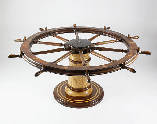 American Large Inlaid Ship’s Wheel Dining Table