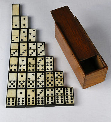 Complete Set of Sailor Made Antique Whalebone and Ebony Encased Dominoes