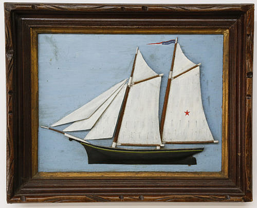 Folk Art Relief Carved Plaque of a Friendship Sloop, 19th Century