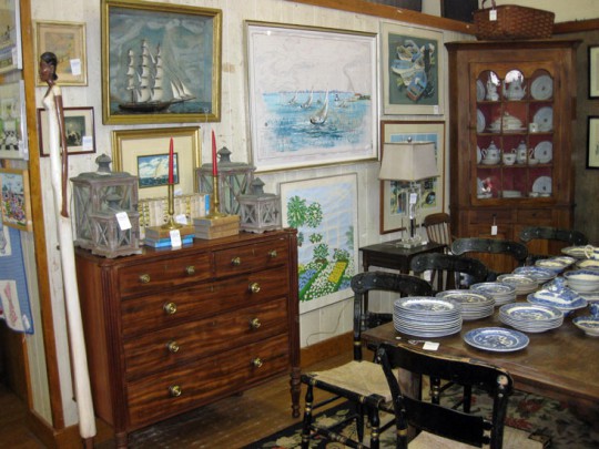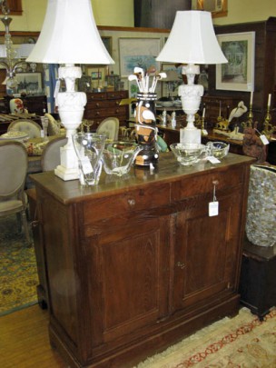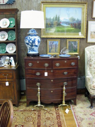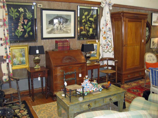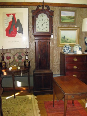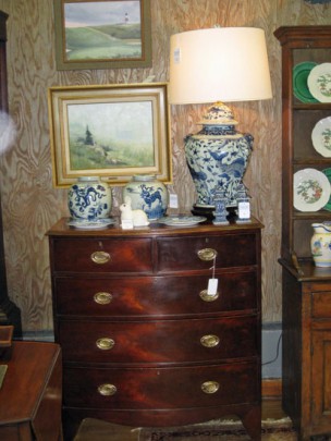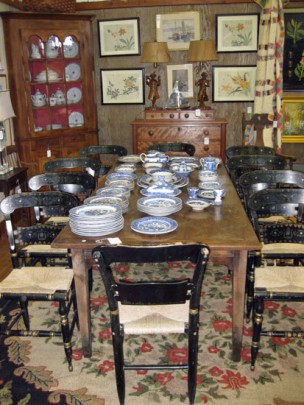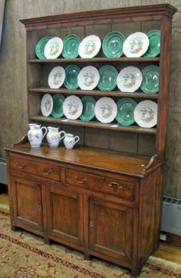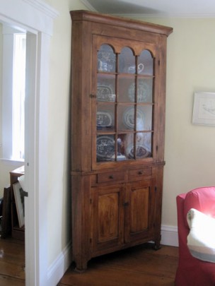 American Pine Corner Cupboard and Misc. Blue and White Willow China