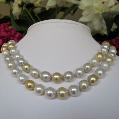 South Sea Pearl Double Strand Necklace in Shades of Gold and White