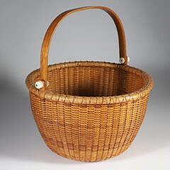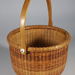 • Rare Captain Thomas James (1811-1885) Nantucket Round Swing Handle Basket, 2nd Half of the 19th Century