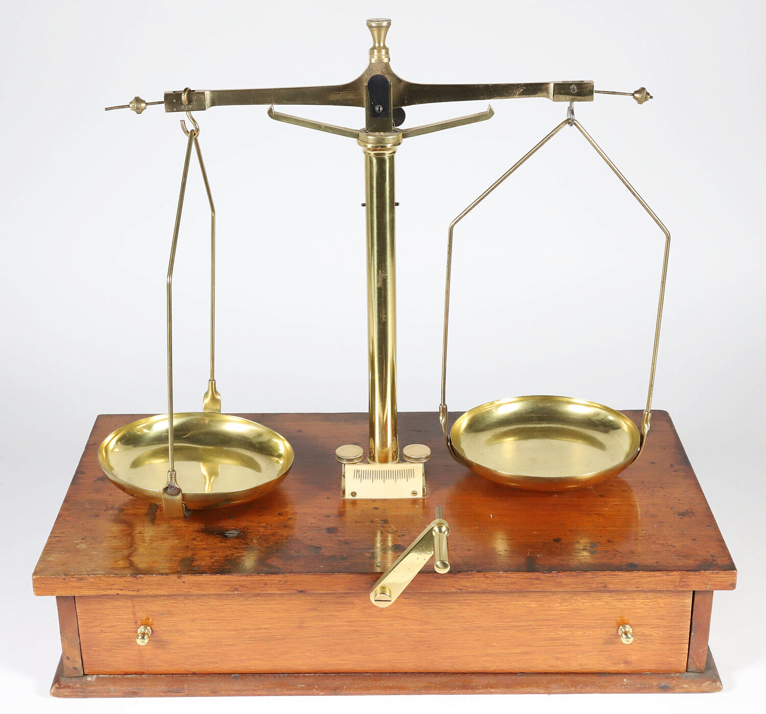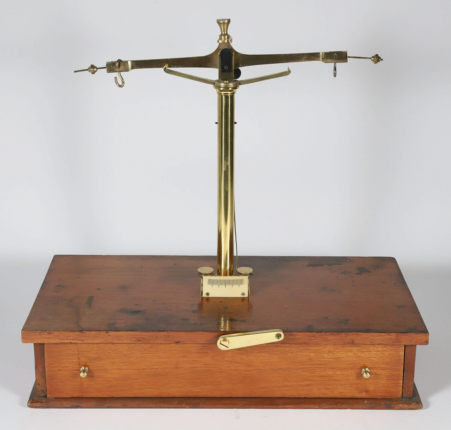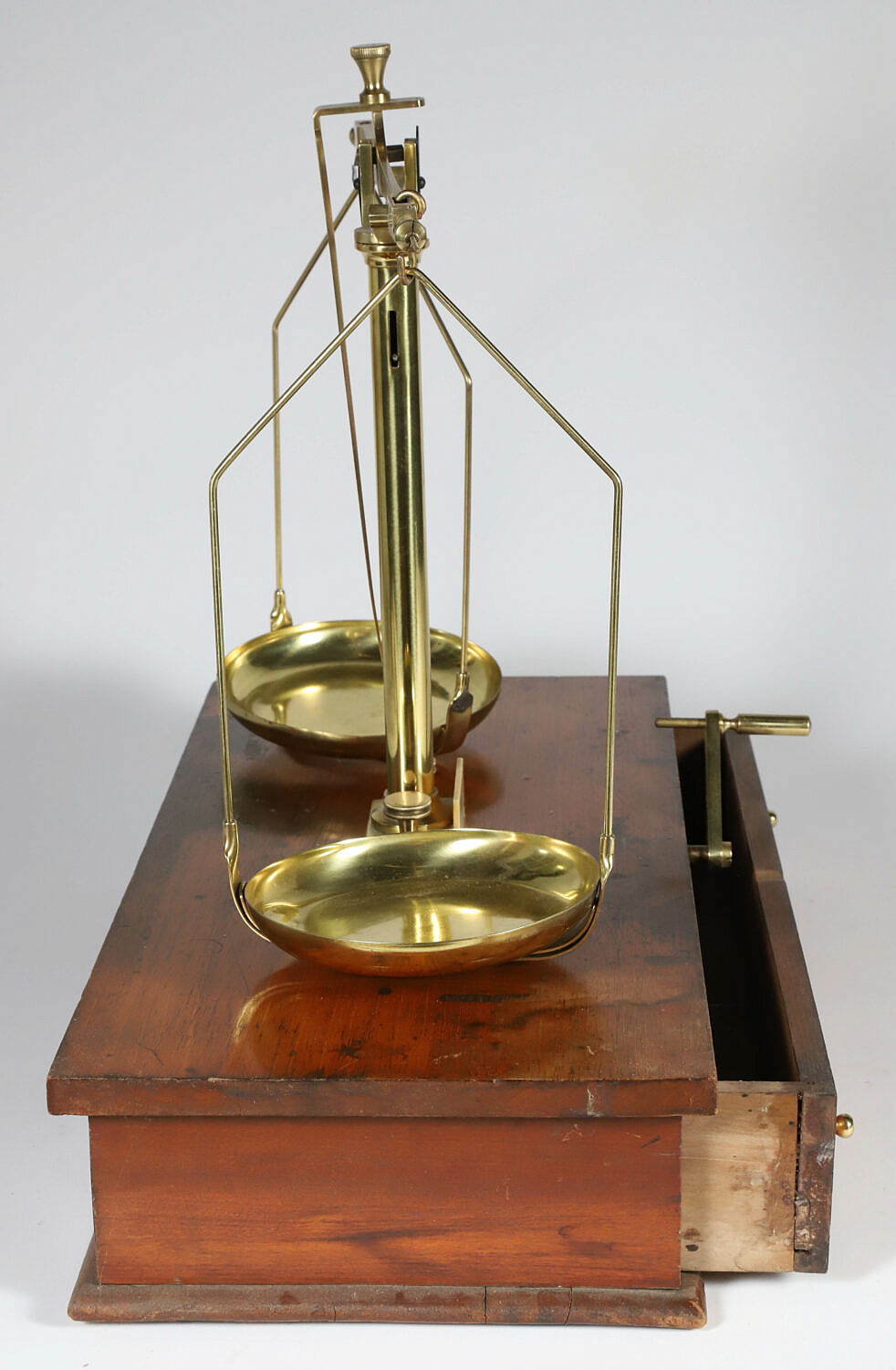 Brass Scale on Wood Stand, 19th Century, with One Drawer