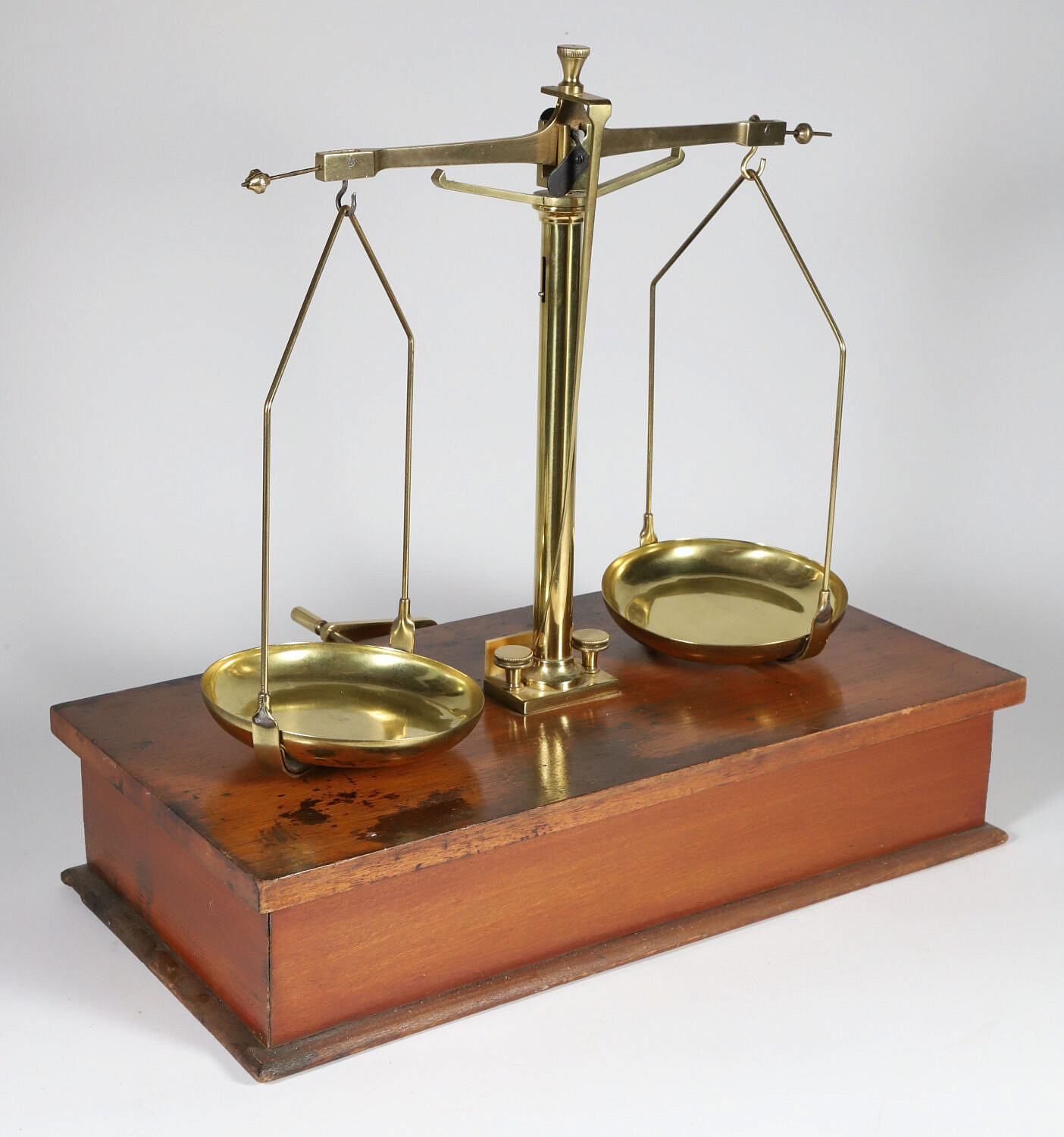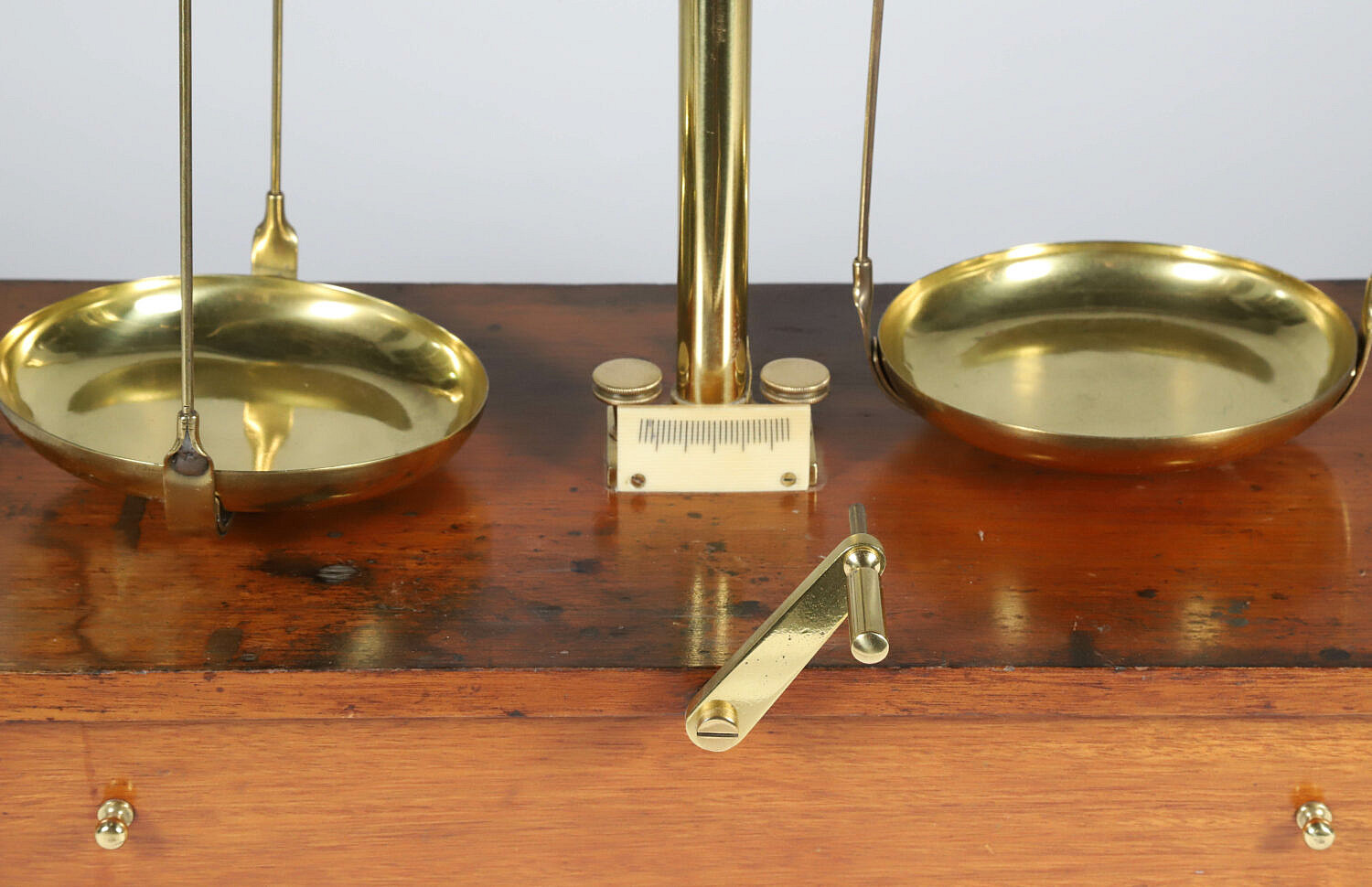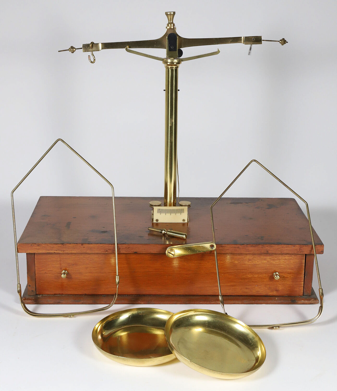 Brass Scale on Wood Stand, 19th Century, with One Drawer