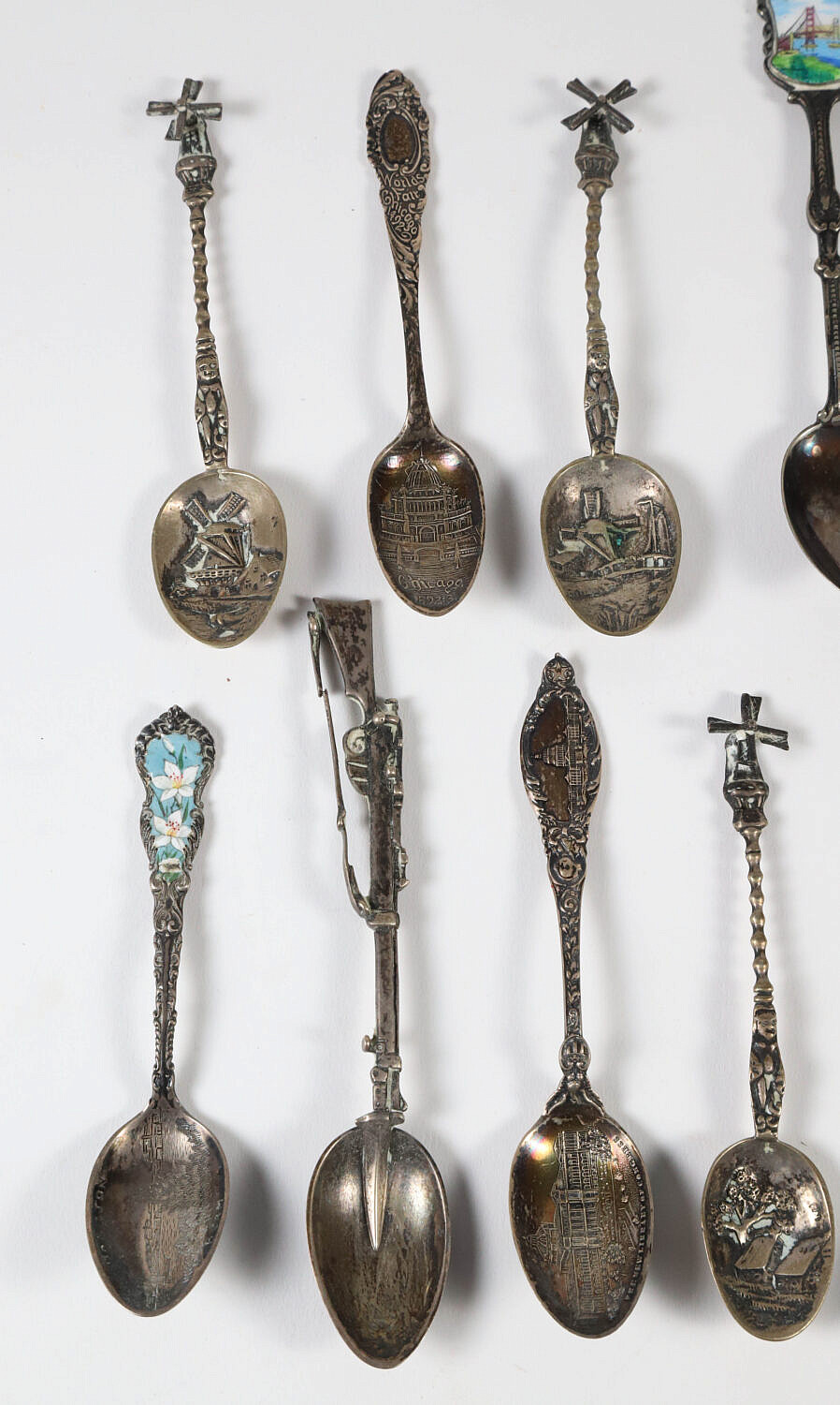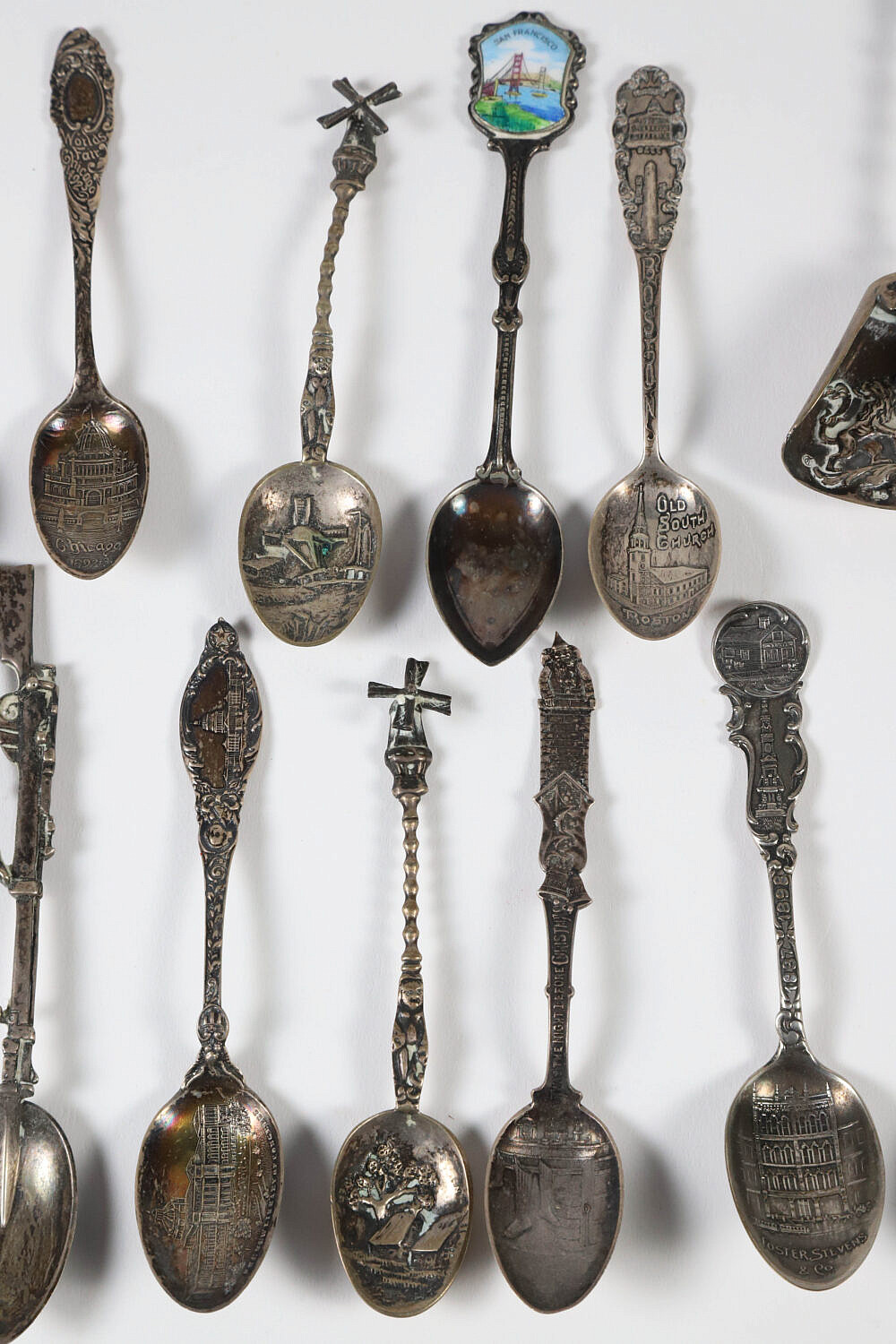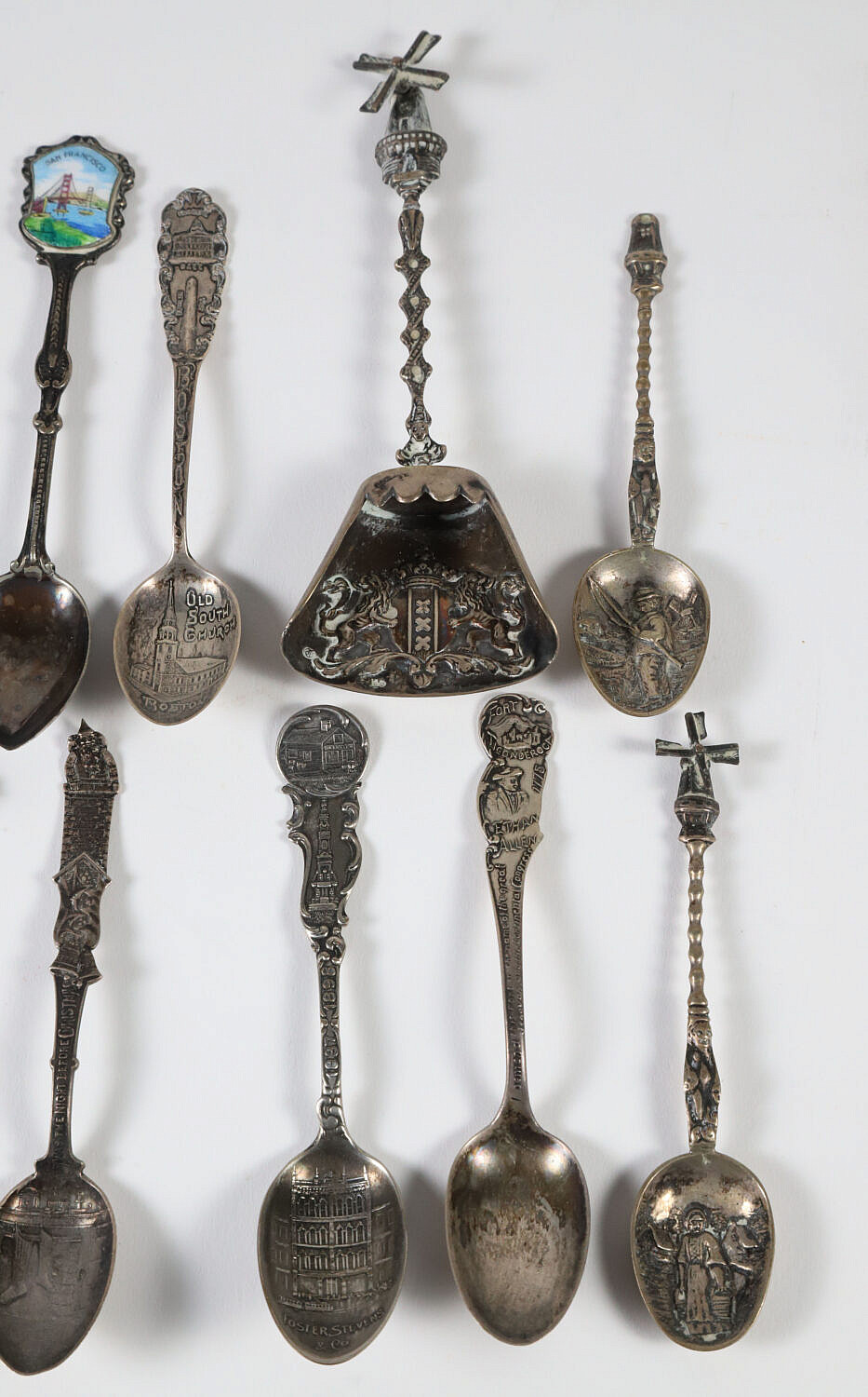 Collection of Sixteen Sterling and Silver Plated Souvenir Spoons