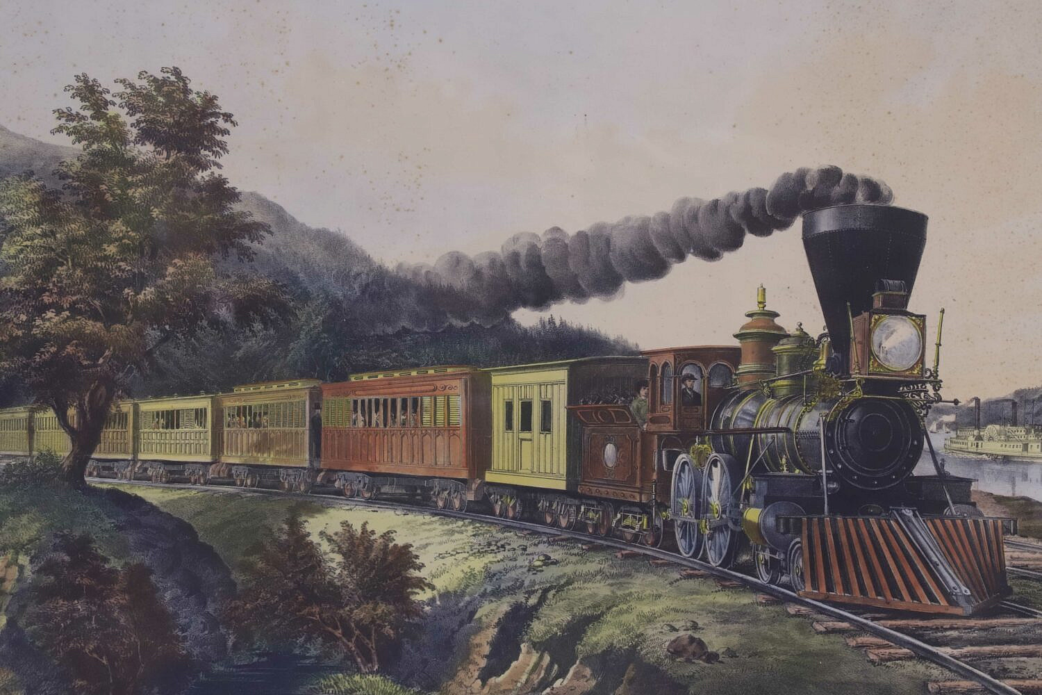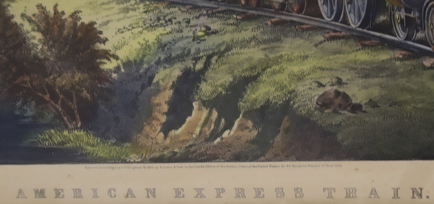 Currier & Ives Colored Lithograph “American Express Train” Size20 in. x 30 in. Framed 24 in. x 34 in.Ref #38-2046 Currier & Ives Colored Lithograph “American Express Train”, in period bird’s eye frame with gilt liner 20 in. x 30 in. Framed 24 in. x 34 in. This item has been sold. X Visit our BUY IT NOW collection - frequent new additions ENTER