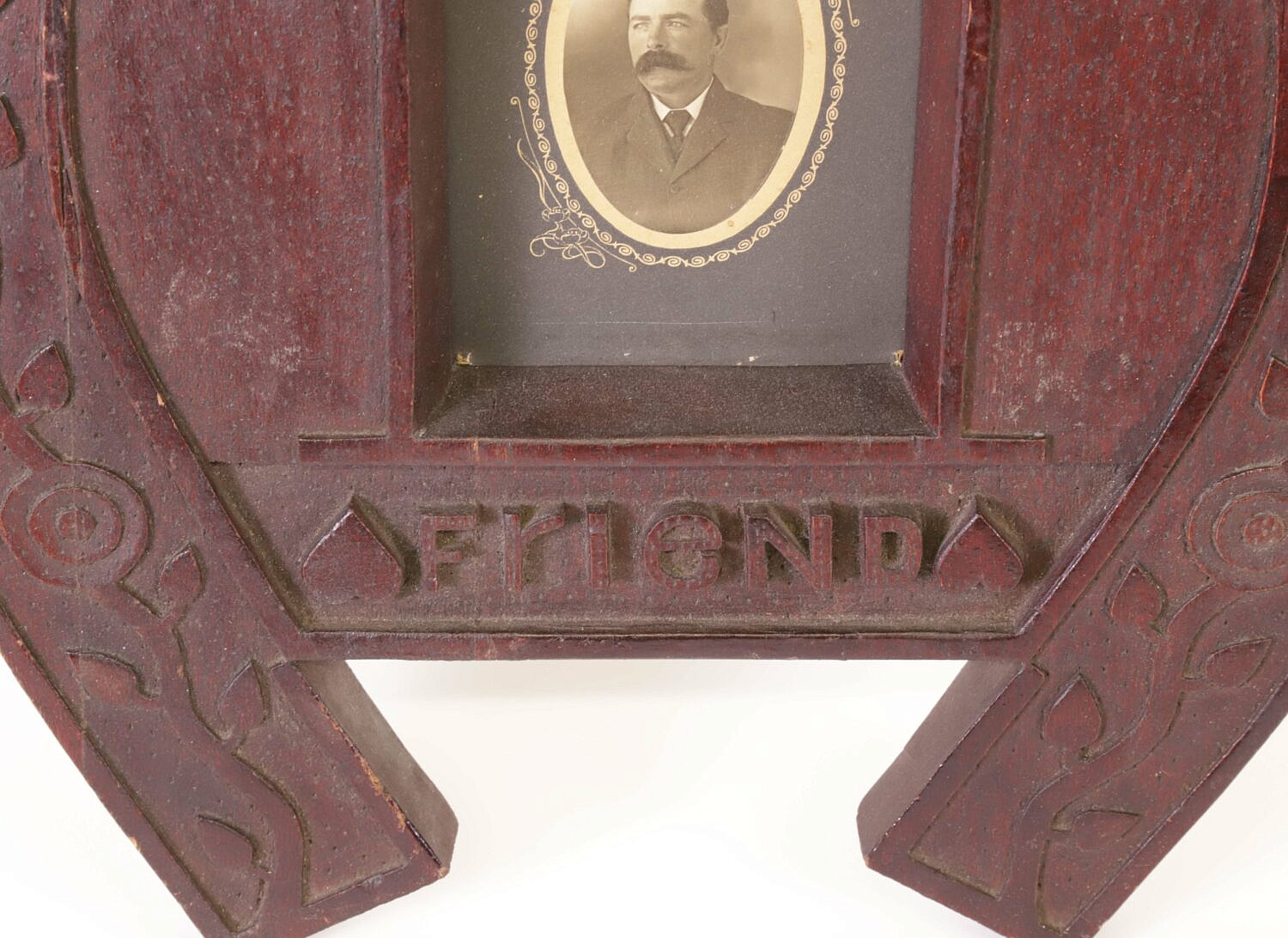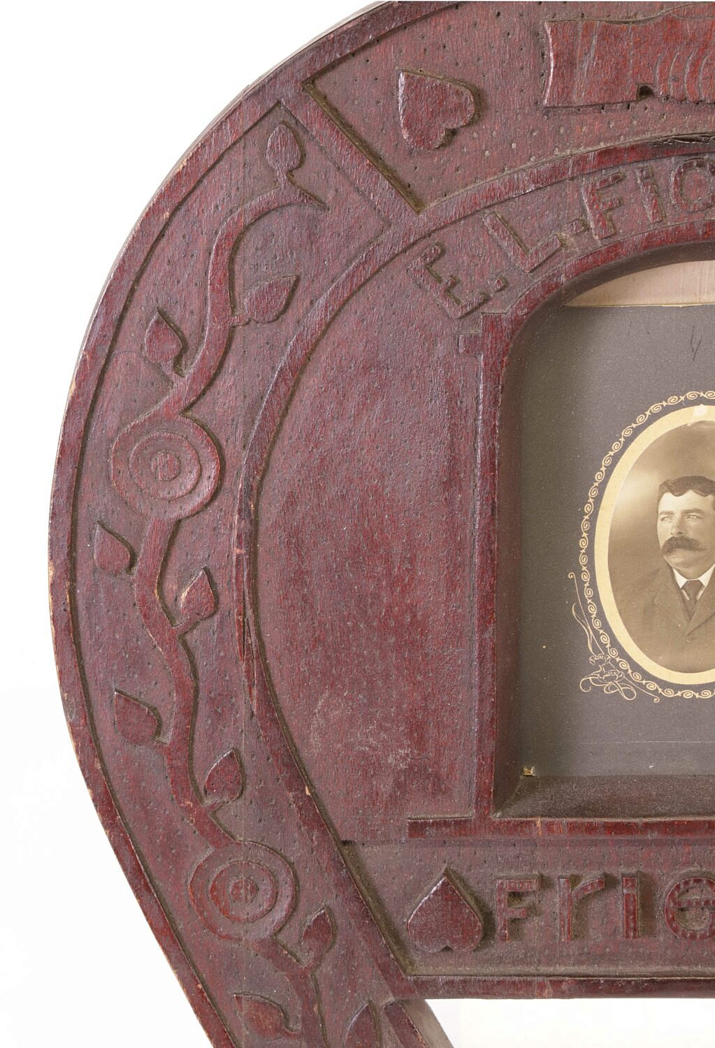Folk Art Chip Carved “E.L. Fickett Friend” Lucky Horseshoe Plaque, 19th Century