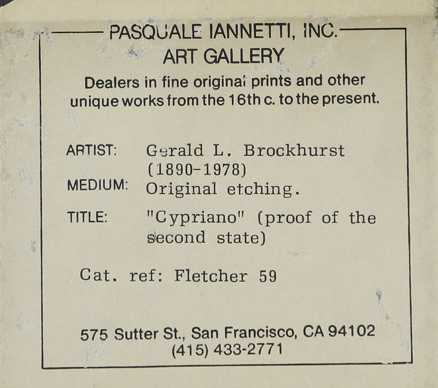 Provenance: Pasquale Lannetti Art Gallery, San Francisco to the Present Owner