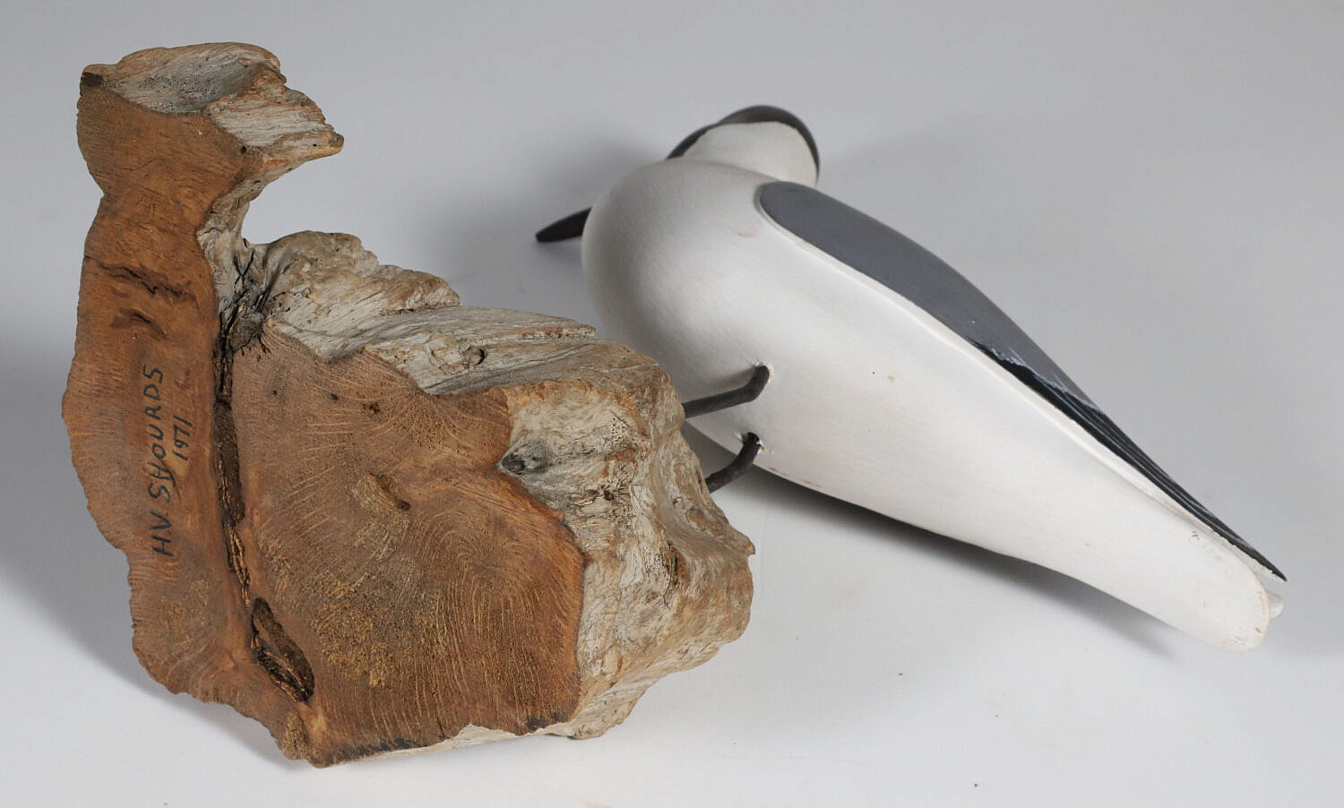 H.V. Shourds Carved and Painted Gull Sculpture, circa 1971 SizeHeight 10.5 in. Length 10.5 in. Width 2.5 in.Ref #131-5450 H.V. Shourds Carved and Painted Gull Sculpture, circa 1971, signed underneath on wood base H.V. Shourds, 1971 Height 10.5 in. Length 10.5 in. Width 2.5 in. Provenance: The Estate of Joly Walton Stewart, Shimmo, Nantucket Island, Massachusetts This item has been sold. X Visit our BUY IT NOW collection - frequent new additions ENTER