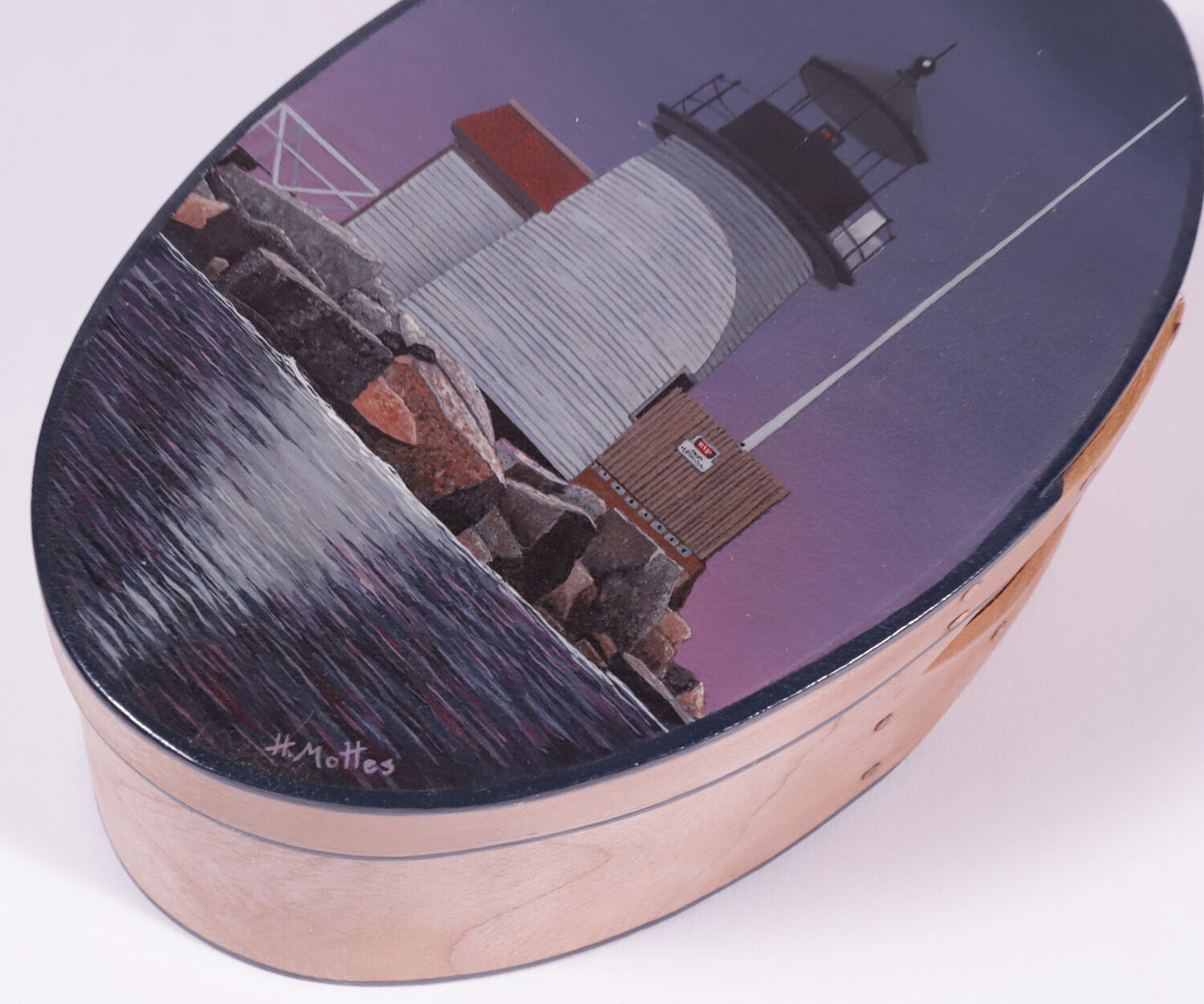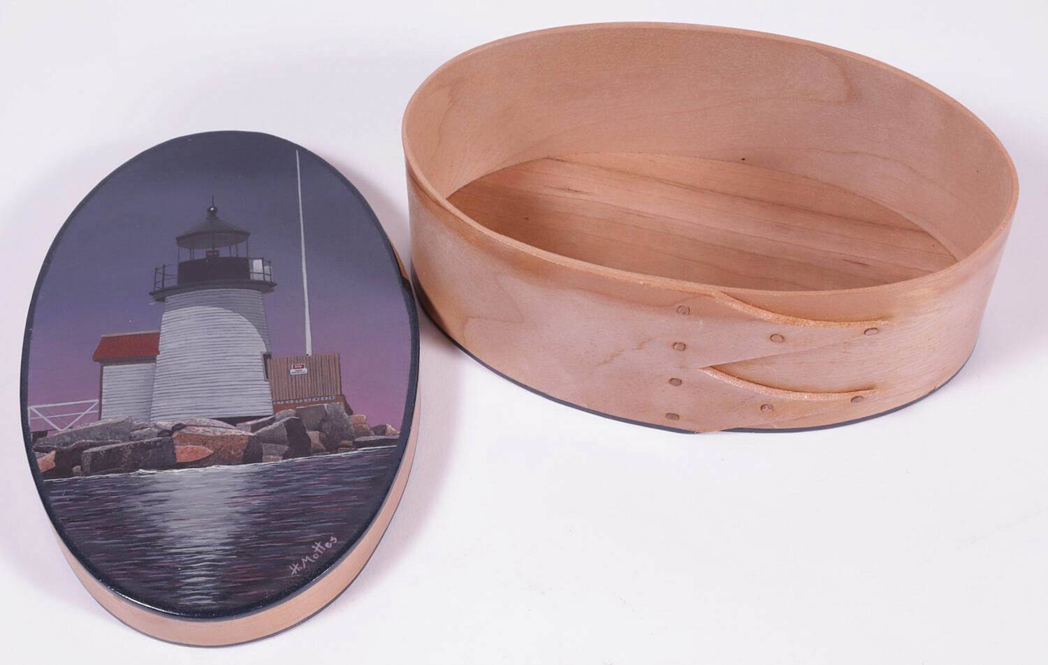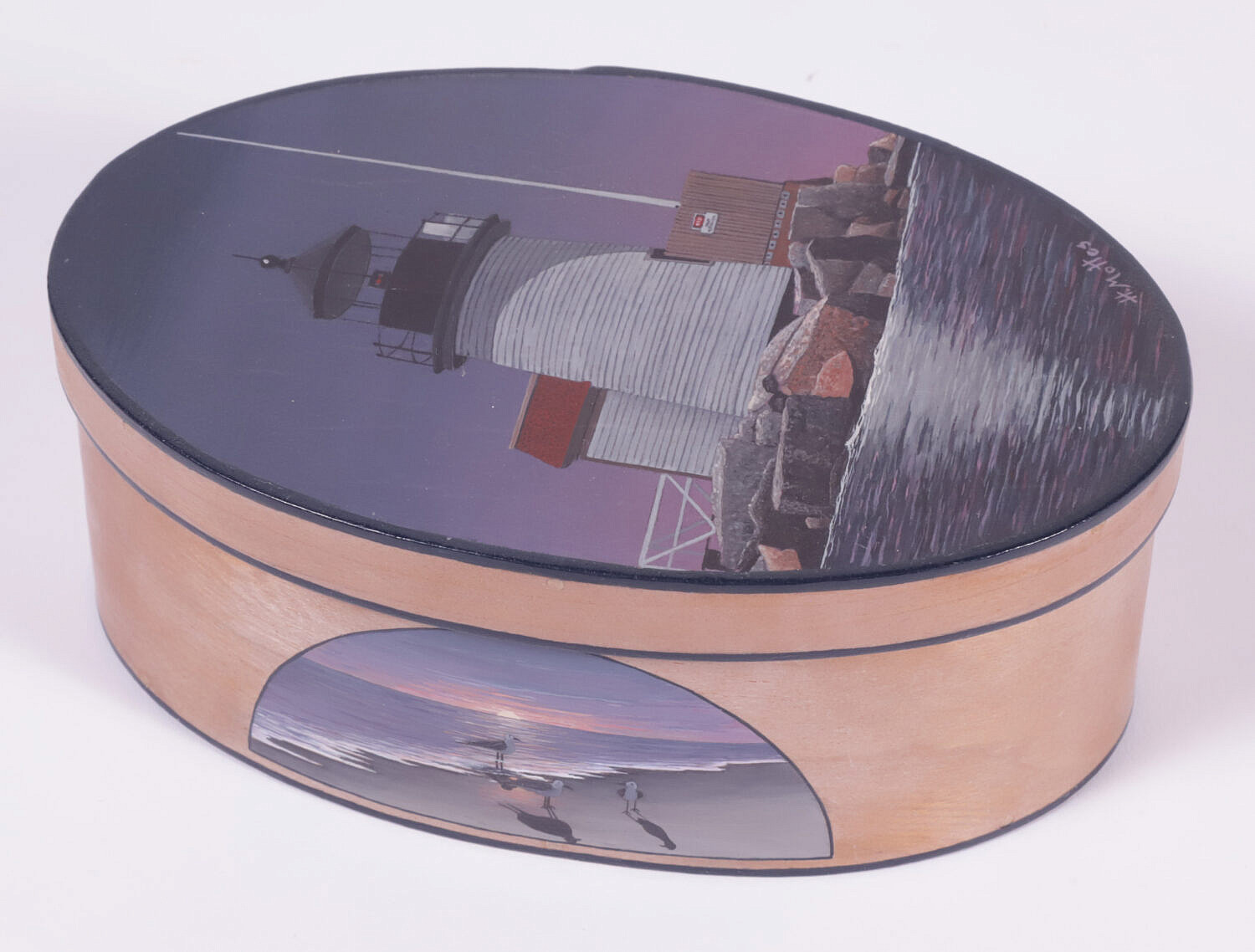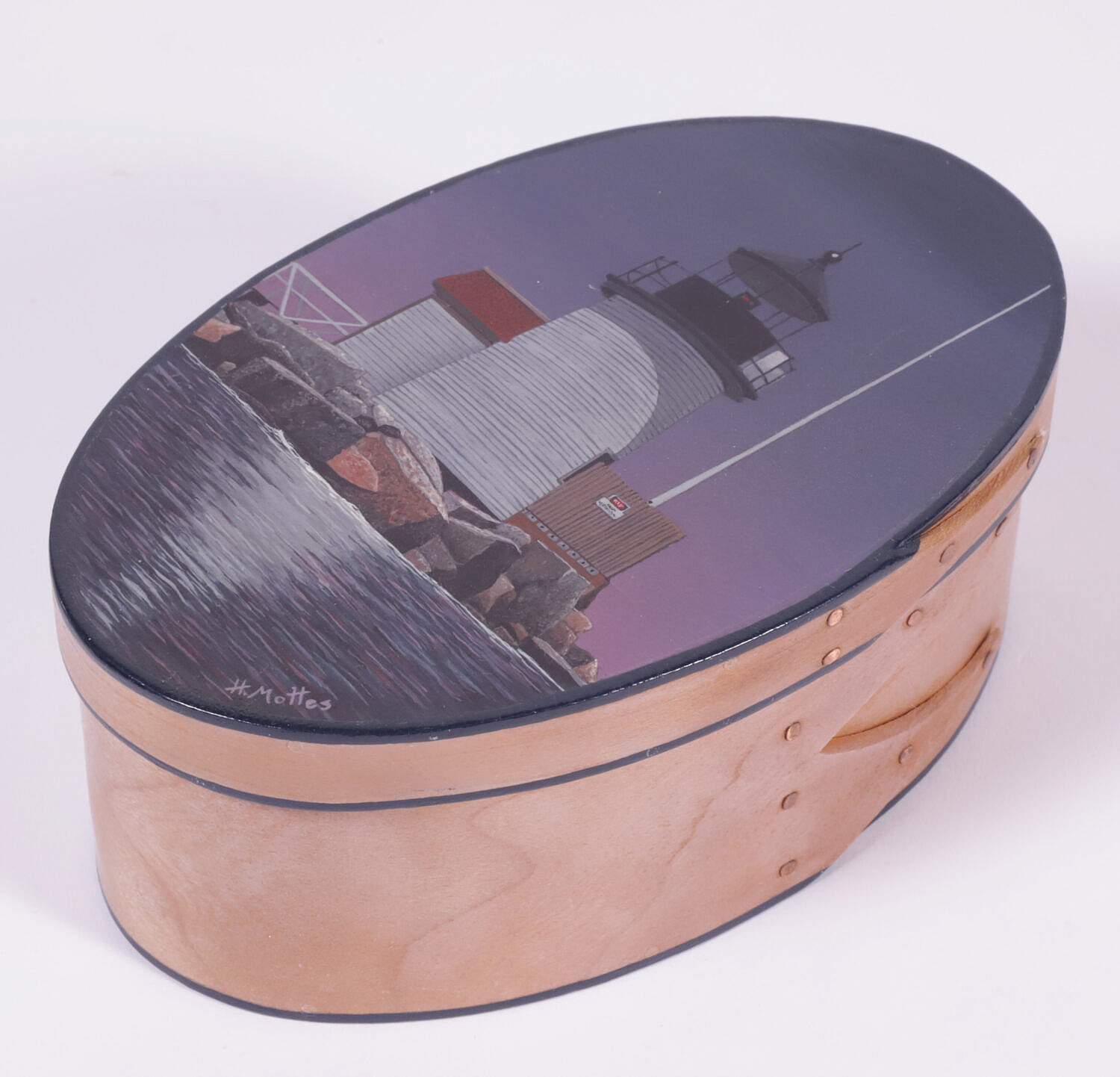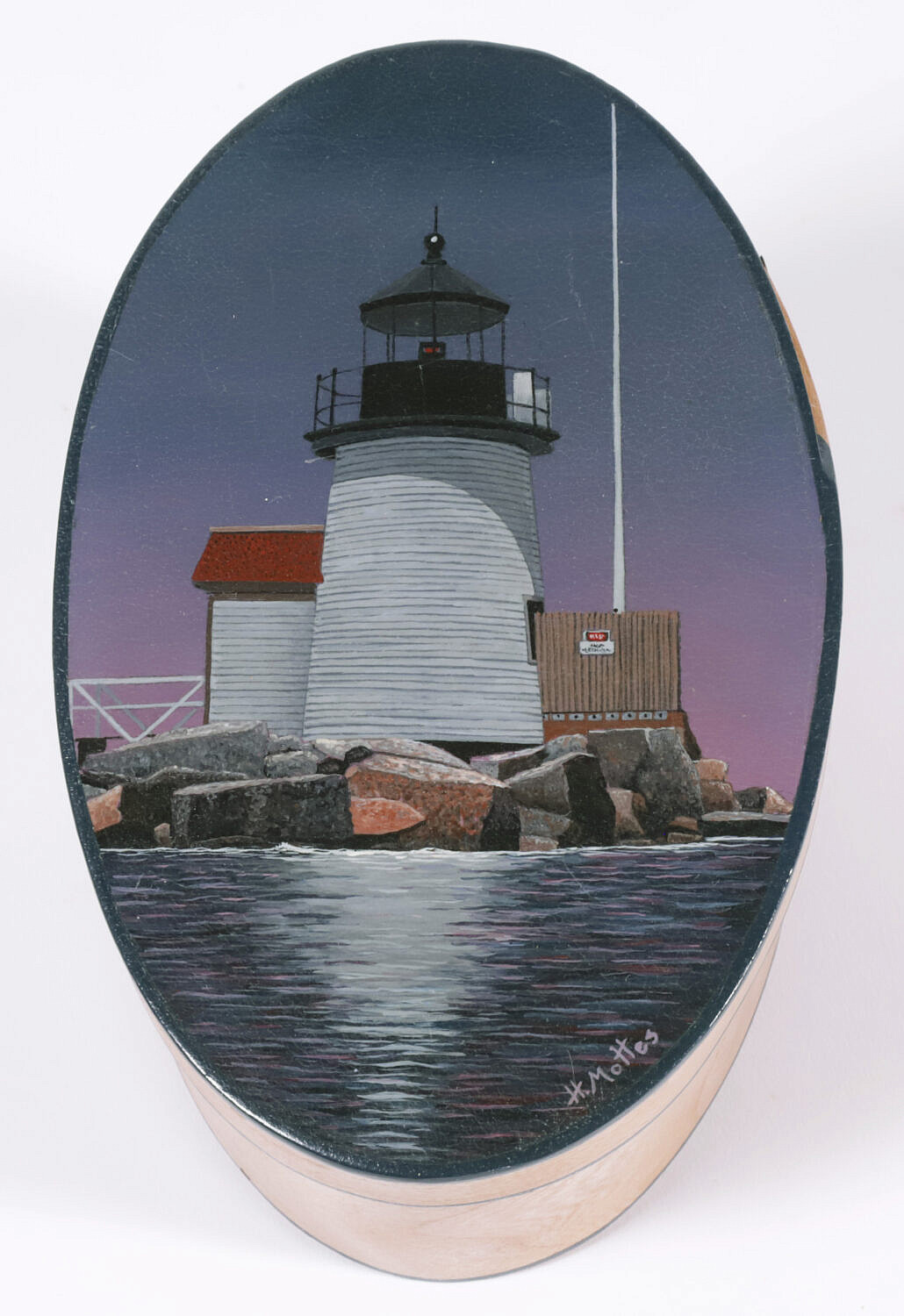 Harriet Mottes Finely Painted Shaker Box “Brant Point Light, Nantucket”