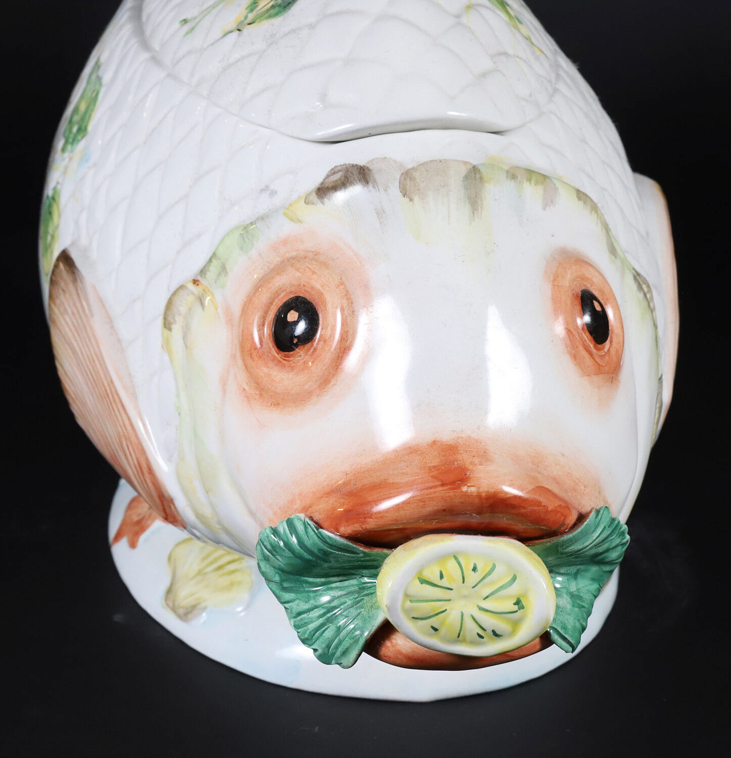 Italian Ceramic Fish Form Tureen and Cover SizeHeight 11 in. Length 20.5 in. Width 8 in.Ref #131-5427 Italian Ceramic Fish Form Tureen and Cover Height 11 in. Length 20.5 in. Width 8 in. This item has been sold. X Visit our BUY IT NOW collection - frequent new additions ENTER
