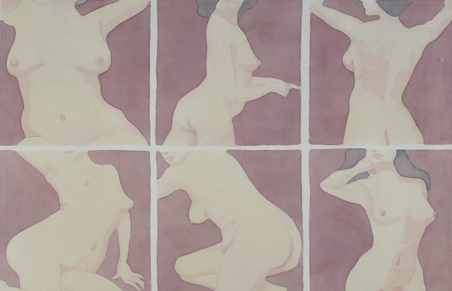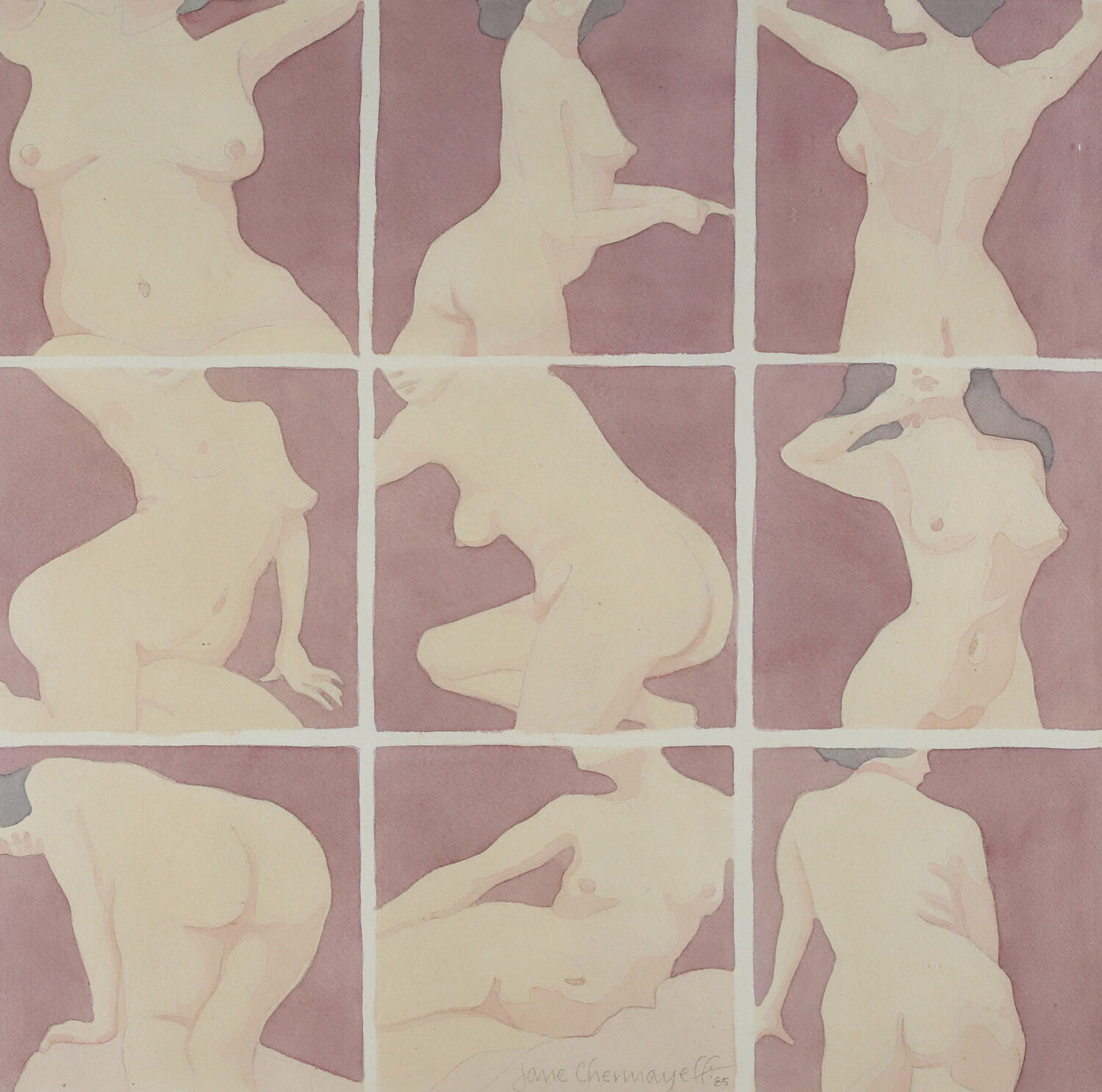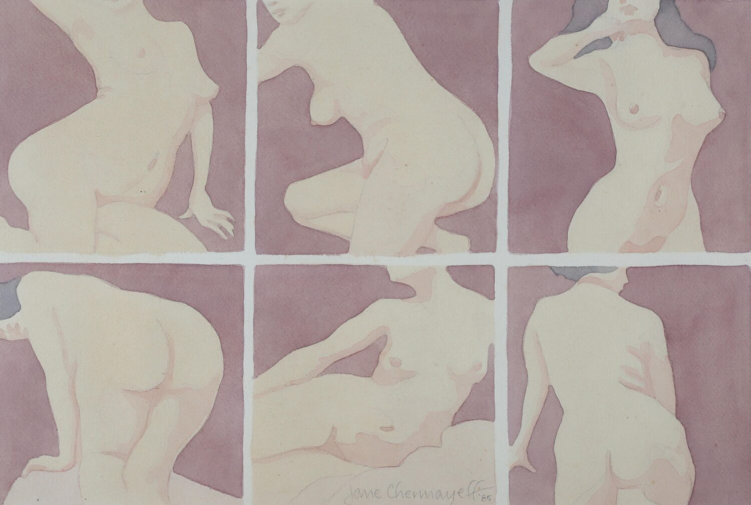 Jane Chermayeff Watercolor on Paper “Studies of a Nude”