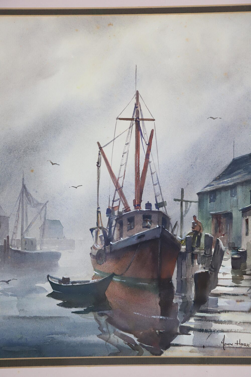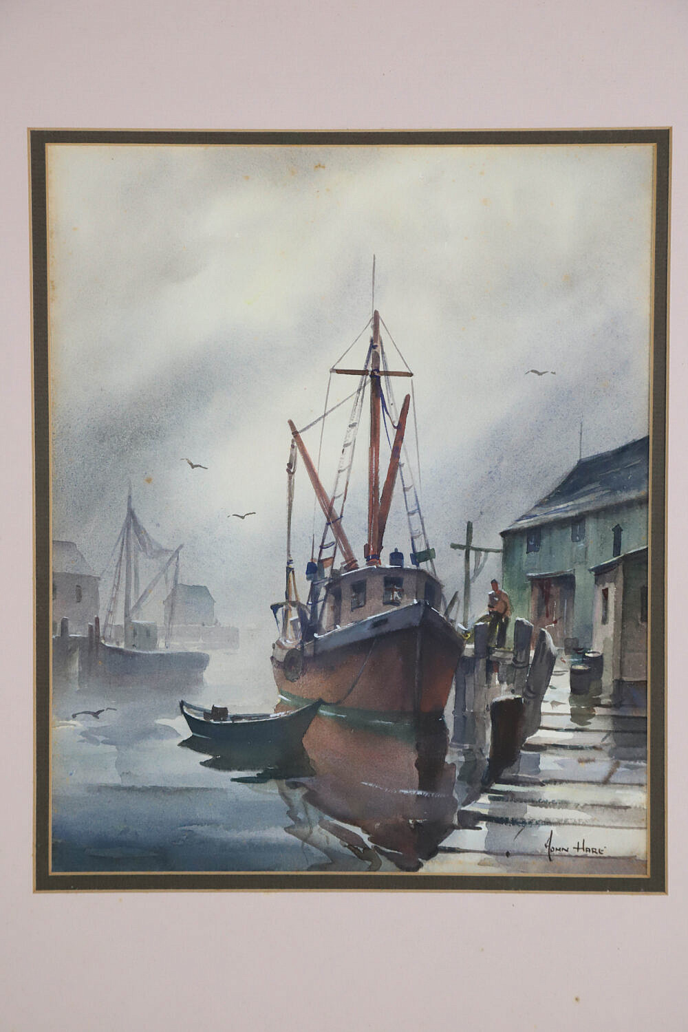 John Hare Watercolor on Paper “Fishing Boats Docked”