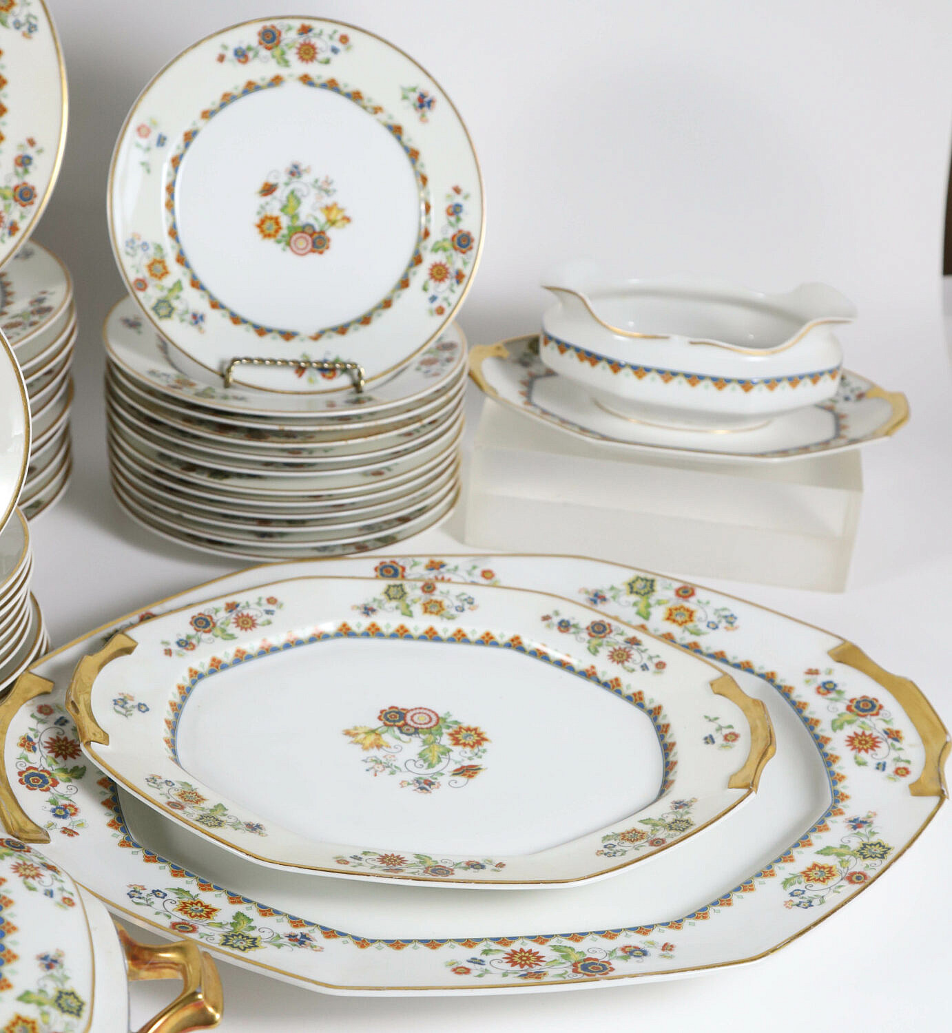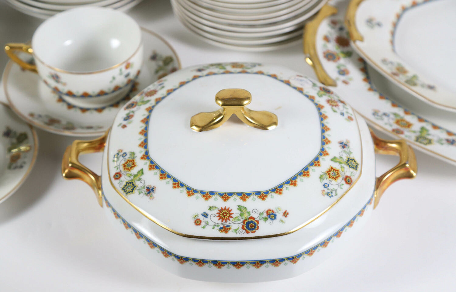 Limoges France Vignaud Dinner Service in the Deuville Pattern Comprising: