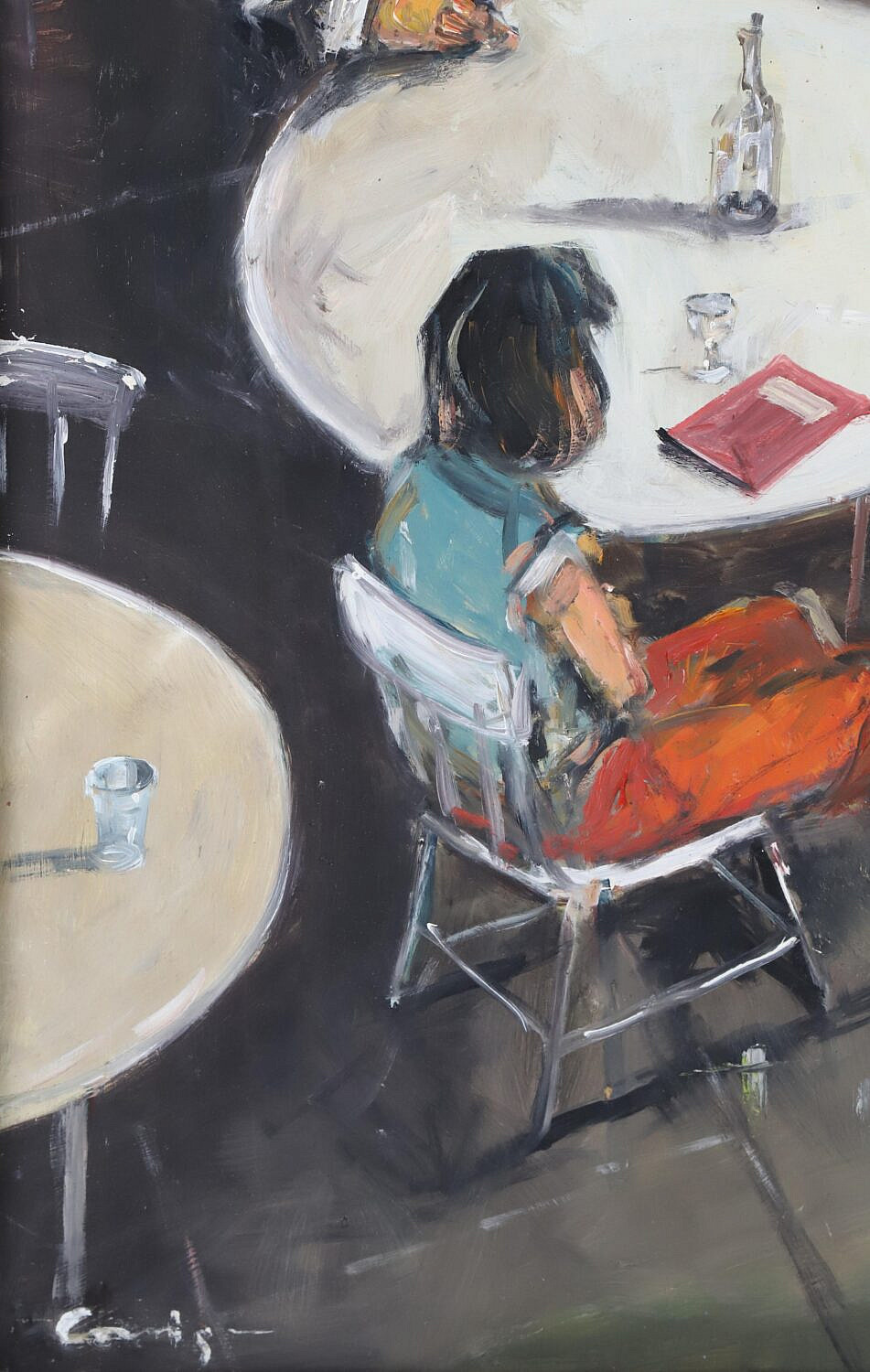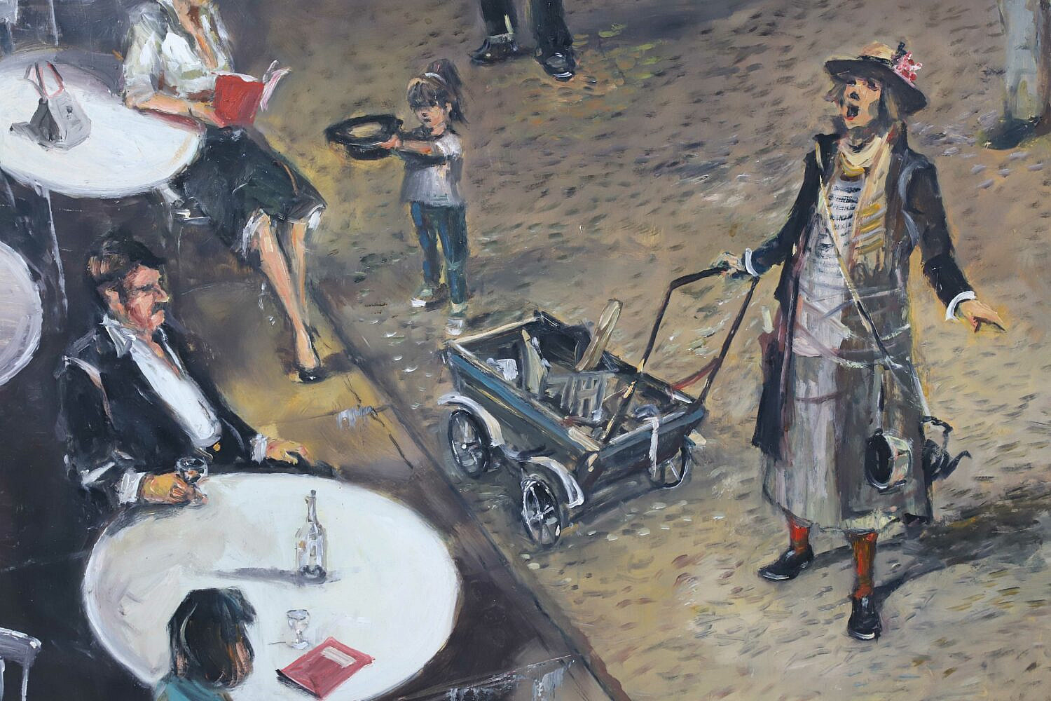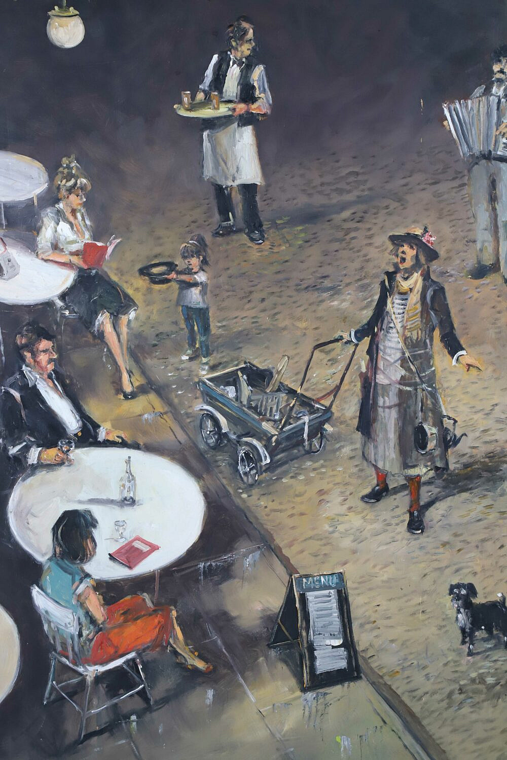 Oil on Artist Board “Serenading Patrons at an Outdoor French Cafe”