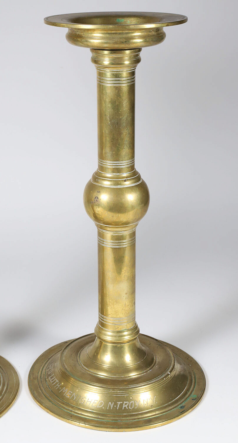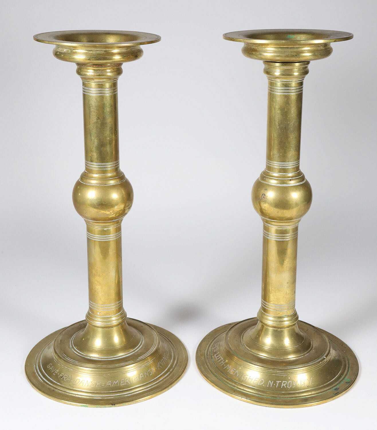 Pair of Antique Persian Engraved Brass Candlesticks, Dated 1914 SizeHeight 17 in.Ref #101 Pair of Antique Persian Engraved Brass Candlesticks, Dated 1914 Height 17 in. This item has been sold. X Visit our BUY IT NOW collection - frequent new additions ENTER