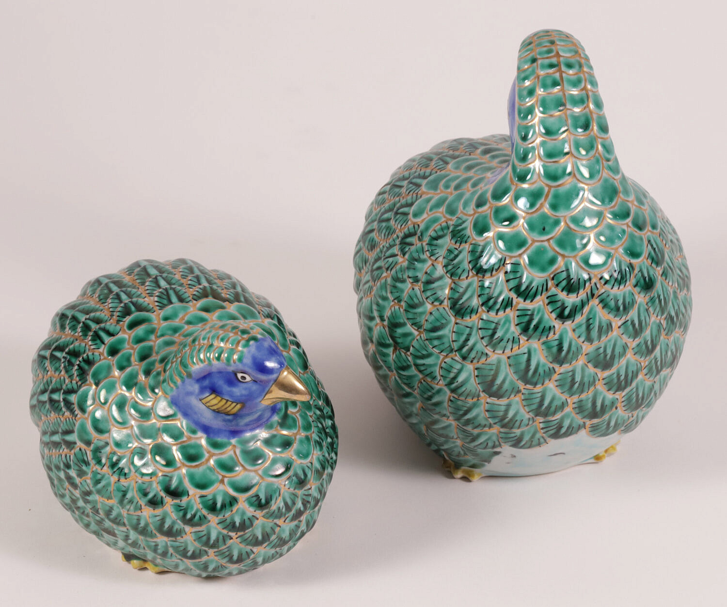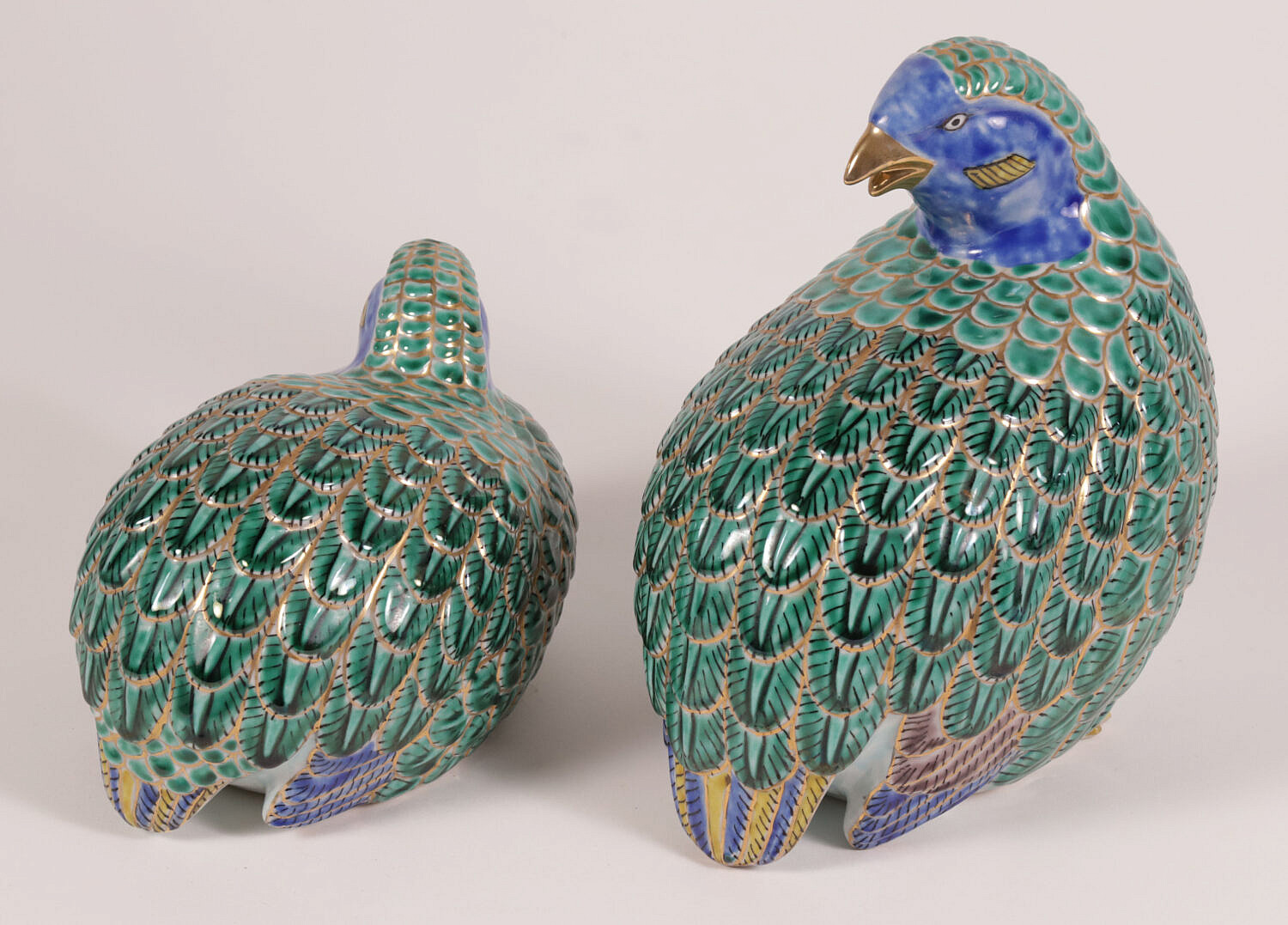Pair of Japanese Polychromed Glazed and Gilt Porcelain Models of Partridges SizeMale: Height 7.5 in. Width 7 in. Depth 5 in.Ref #46-5300 Pair of Japanese Polychromed Glazed and Gilt Porcelain Models of Partridges, impressed signature Male: Height 7.5 in. Width 7 in. Depth 5 in. This item has been sold. X Visit our BUY IT NOW collection - frequent new additions ENTER