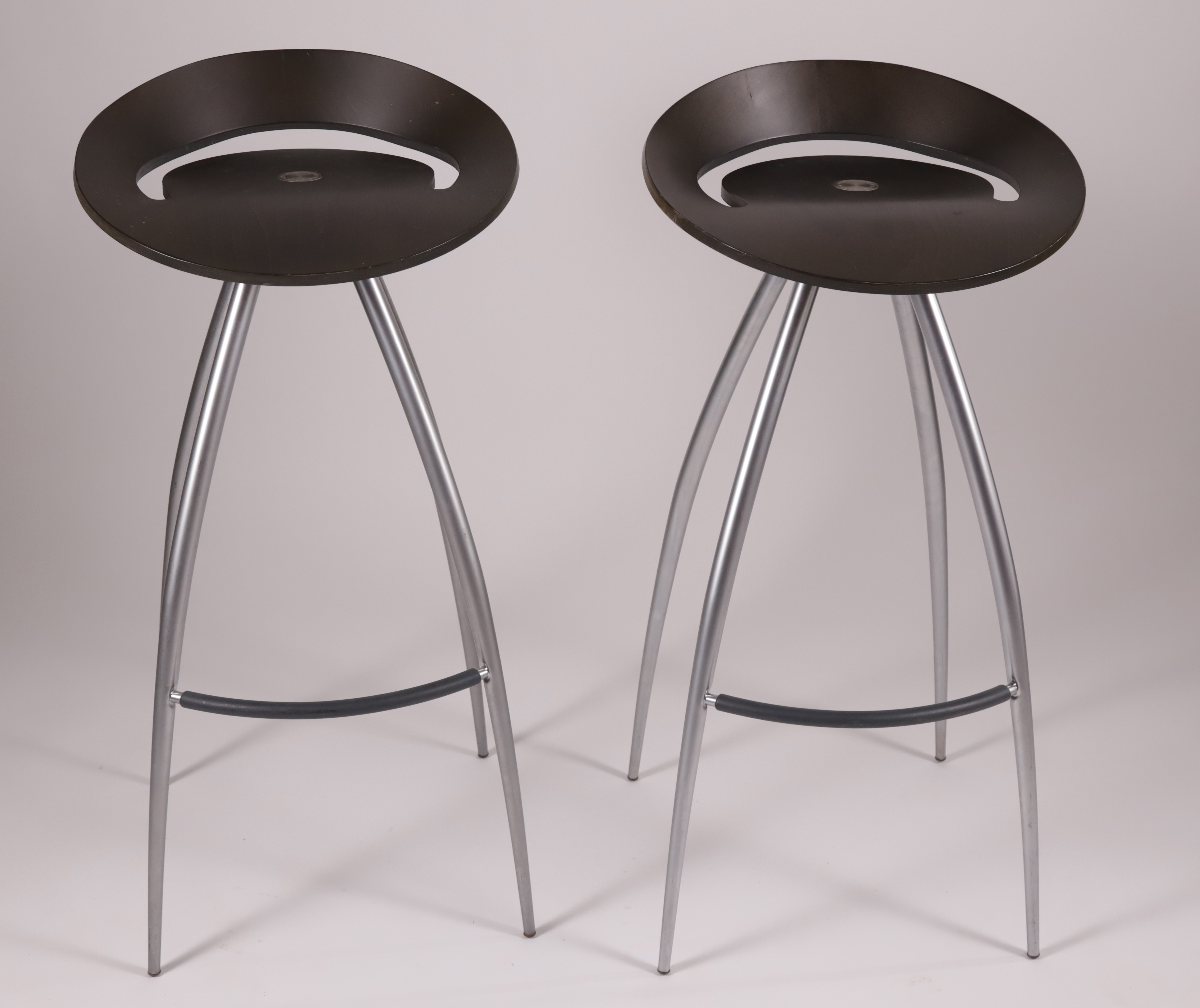 Pair of Lyra Italian Beechwood and Chrome Modern Bar Stools
