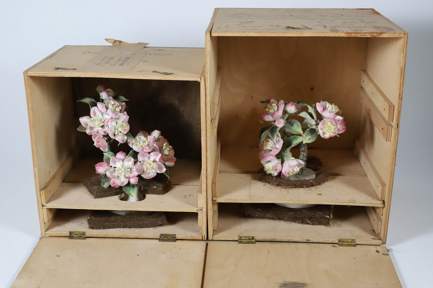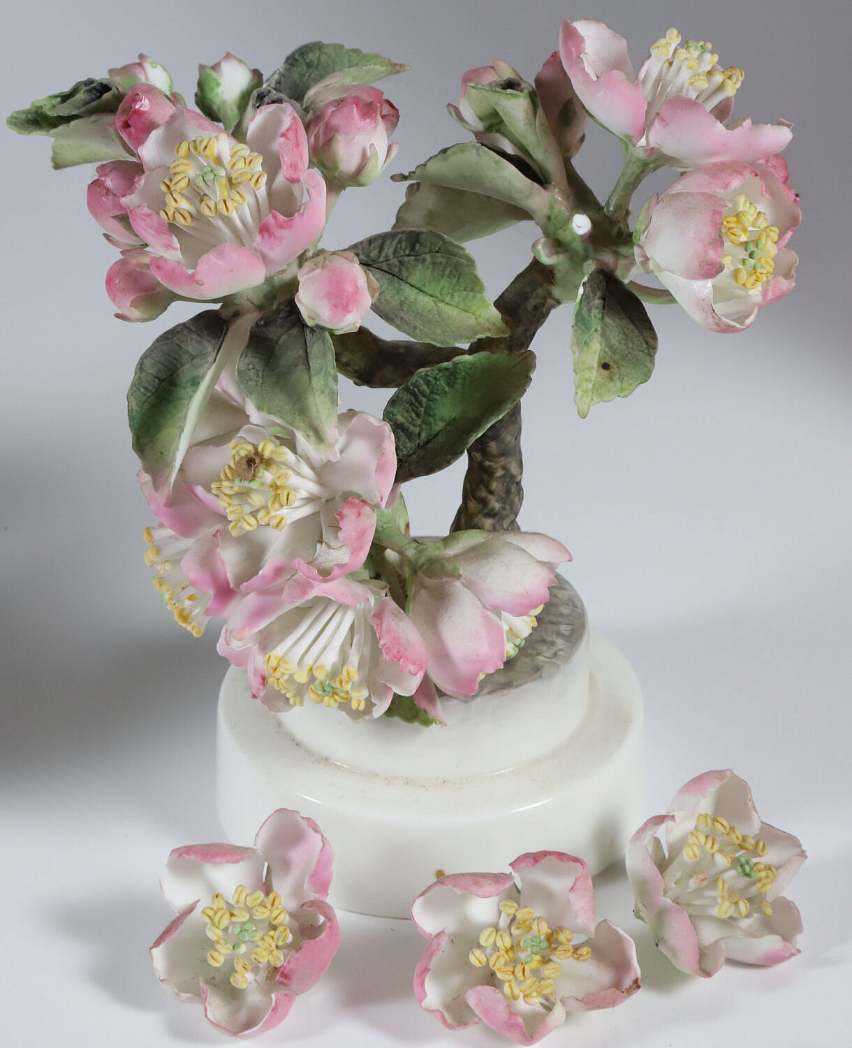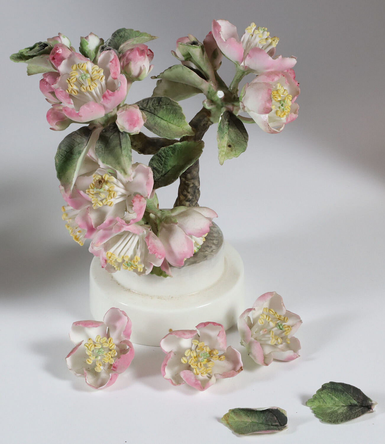 Pair of Royal Worcester Porcelain Apple Blossom and Bee Sculptures