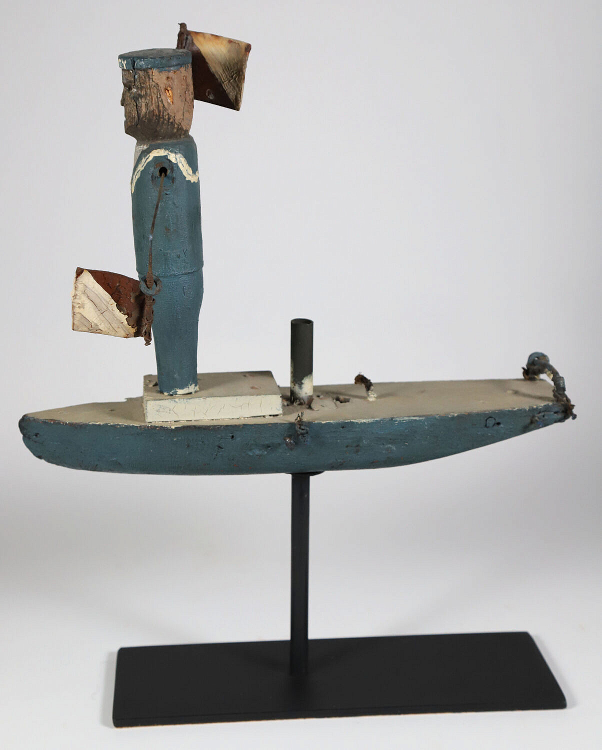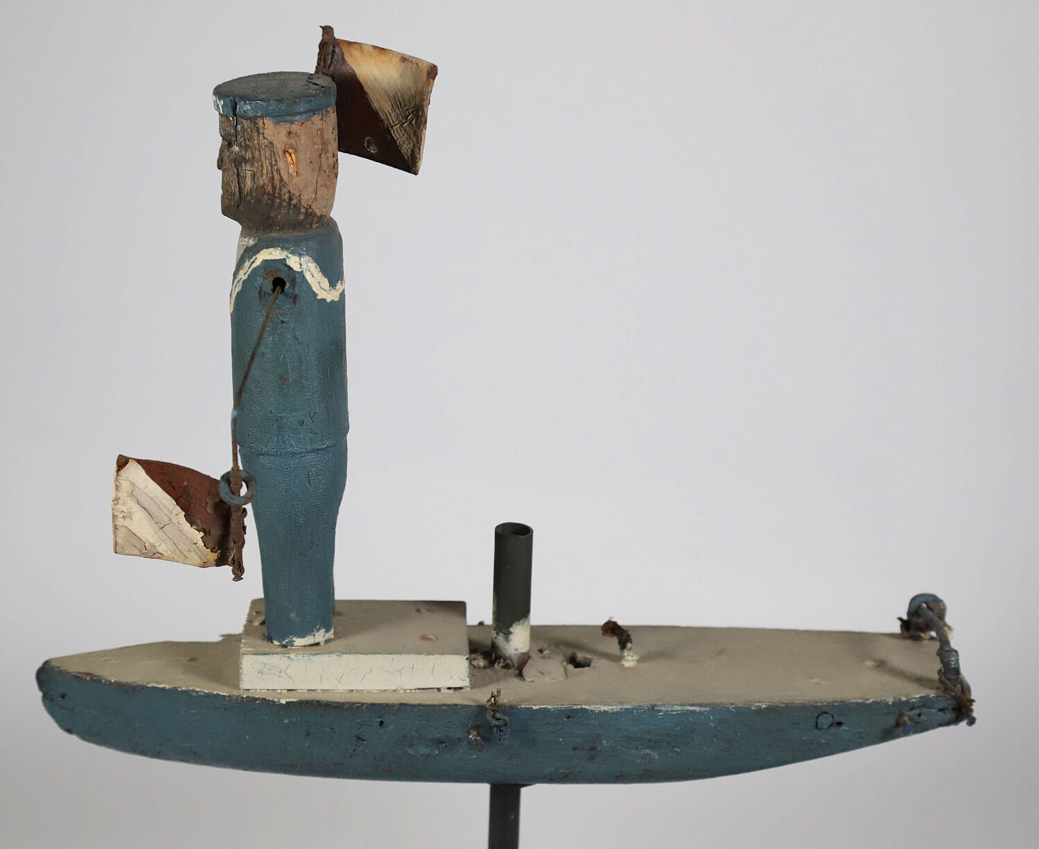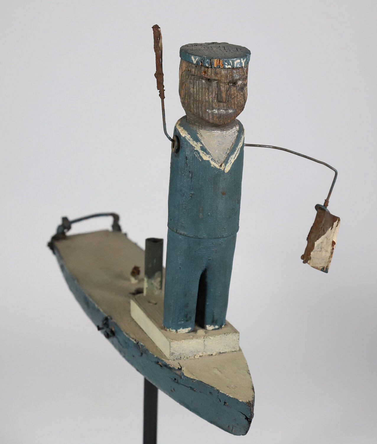 Primitive Folk Art Sailor on Ship Whirligig with Signal Flags