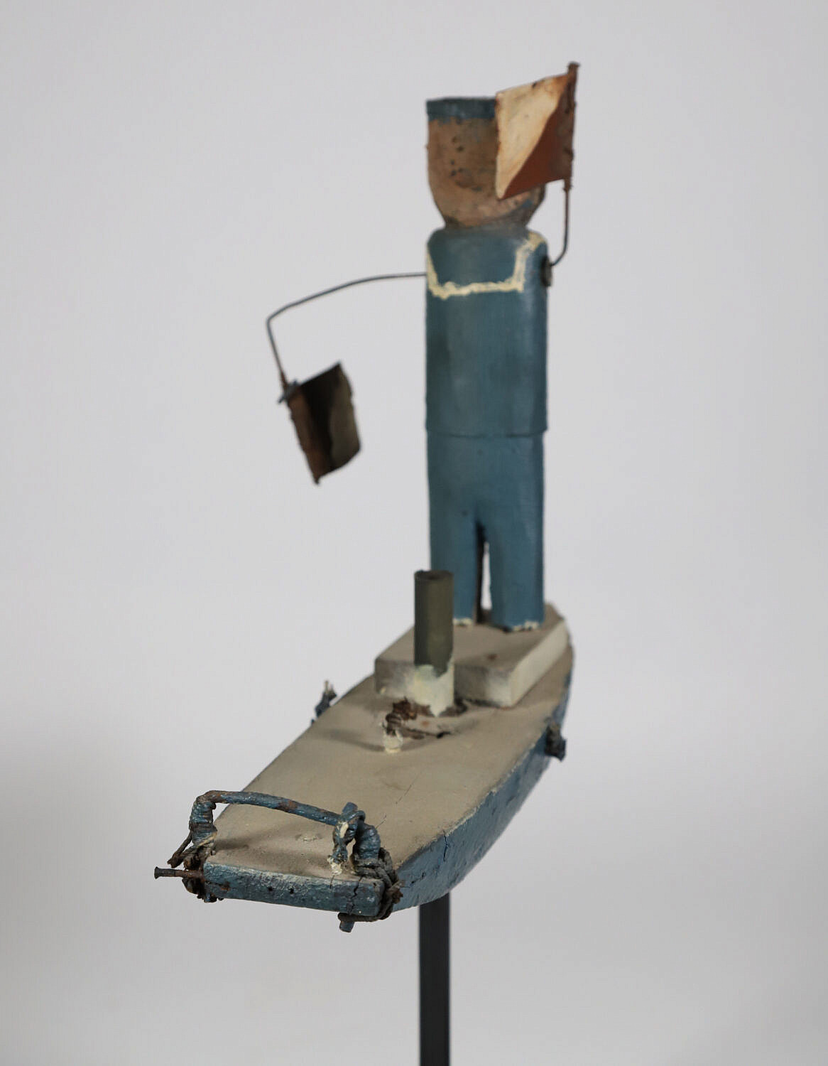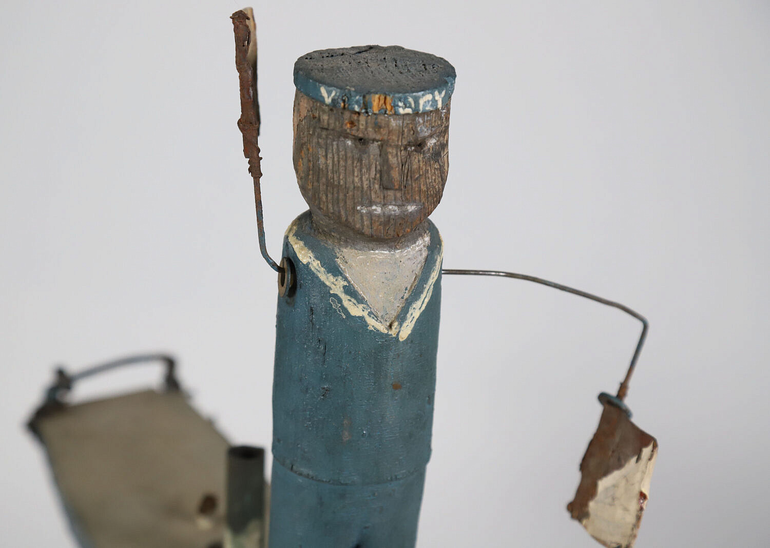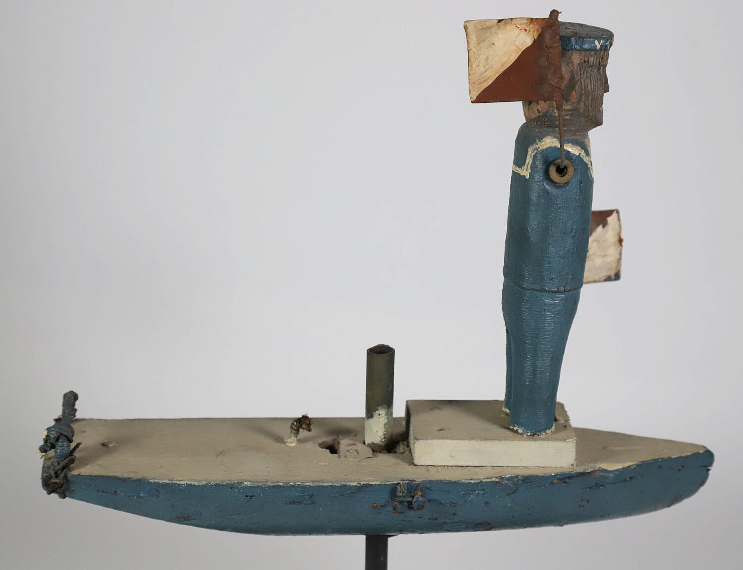 Primitive Folk Art Sailor on Ship Whirligig with Signal Flags