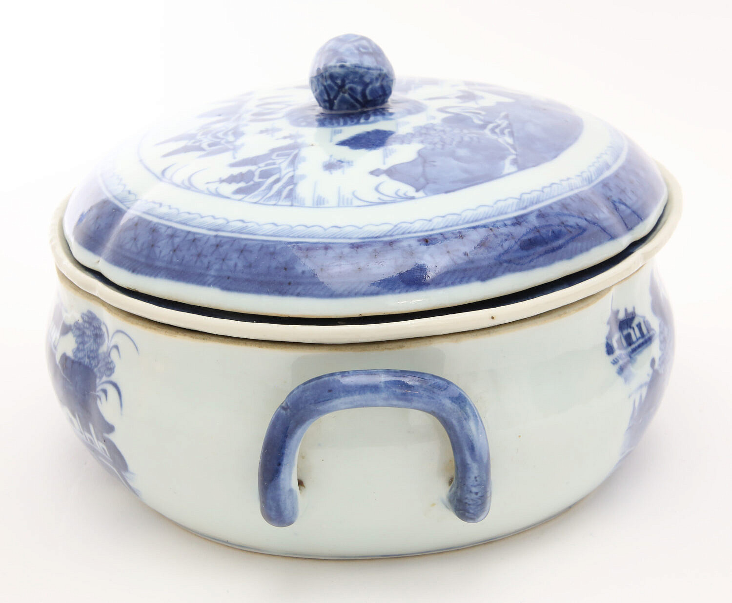 Rare Three-Piece Canton Covered Vegetable Dish, 19th Century