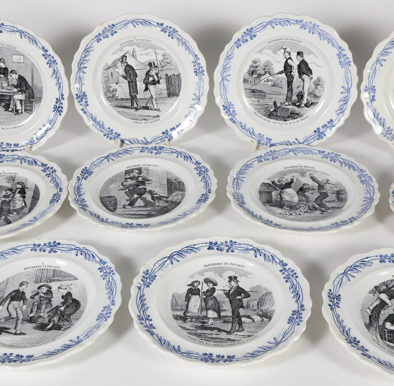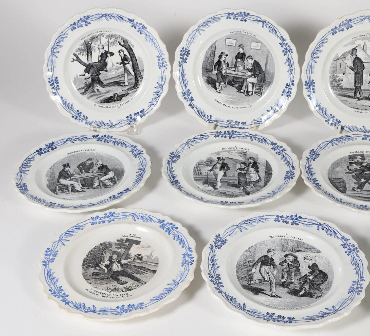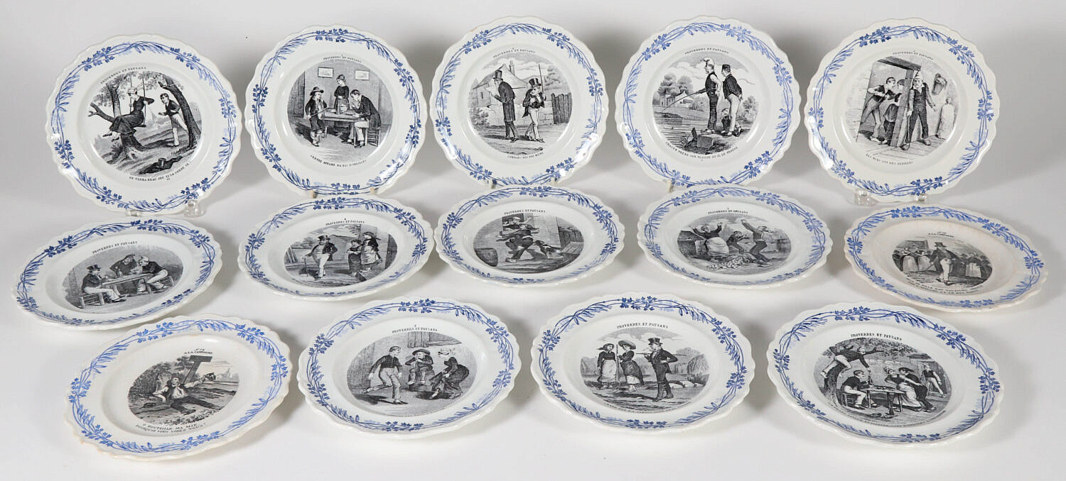 Set of Fourteen Creilet Montereau “Terre de Fer” France Humorist Plates
