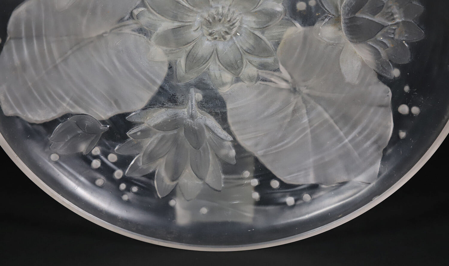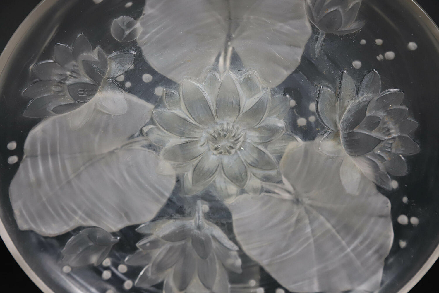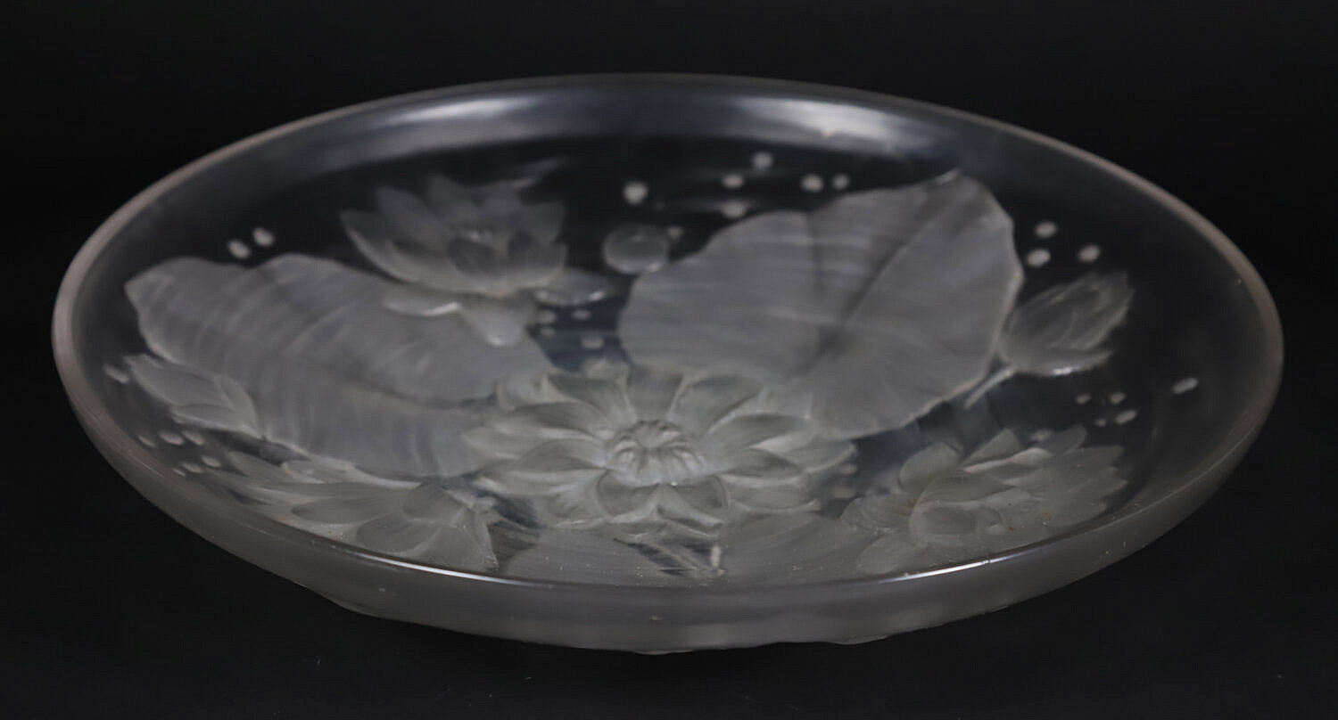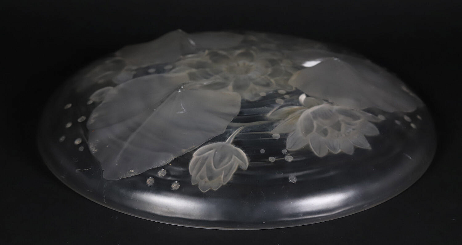 Verlyn Frosted Glass Water Lily Embossed Shallow Bowl
